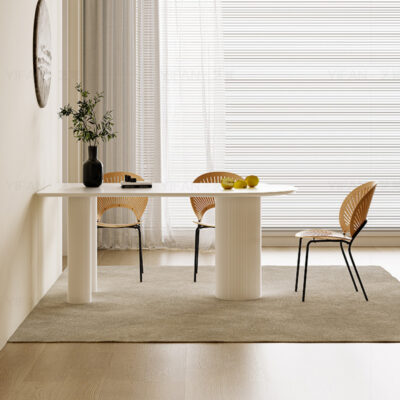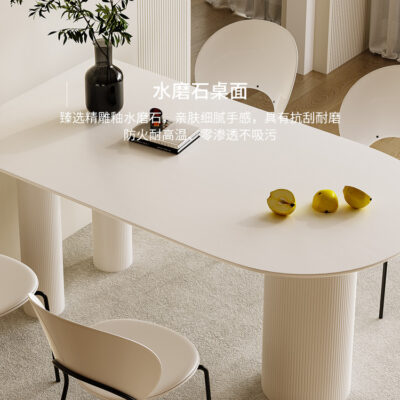 Bàn ăn kết hợp bàn ghế đá gió màu kem Pháp căn hộ nhỏ ánh sáng sang trọng hiện đại bán đảo gỗ nguyên khối bàn ăn gia đình