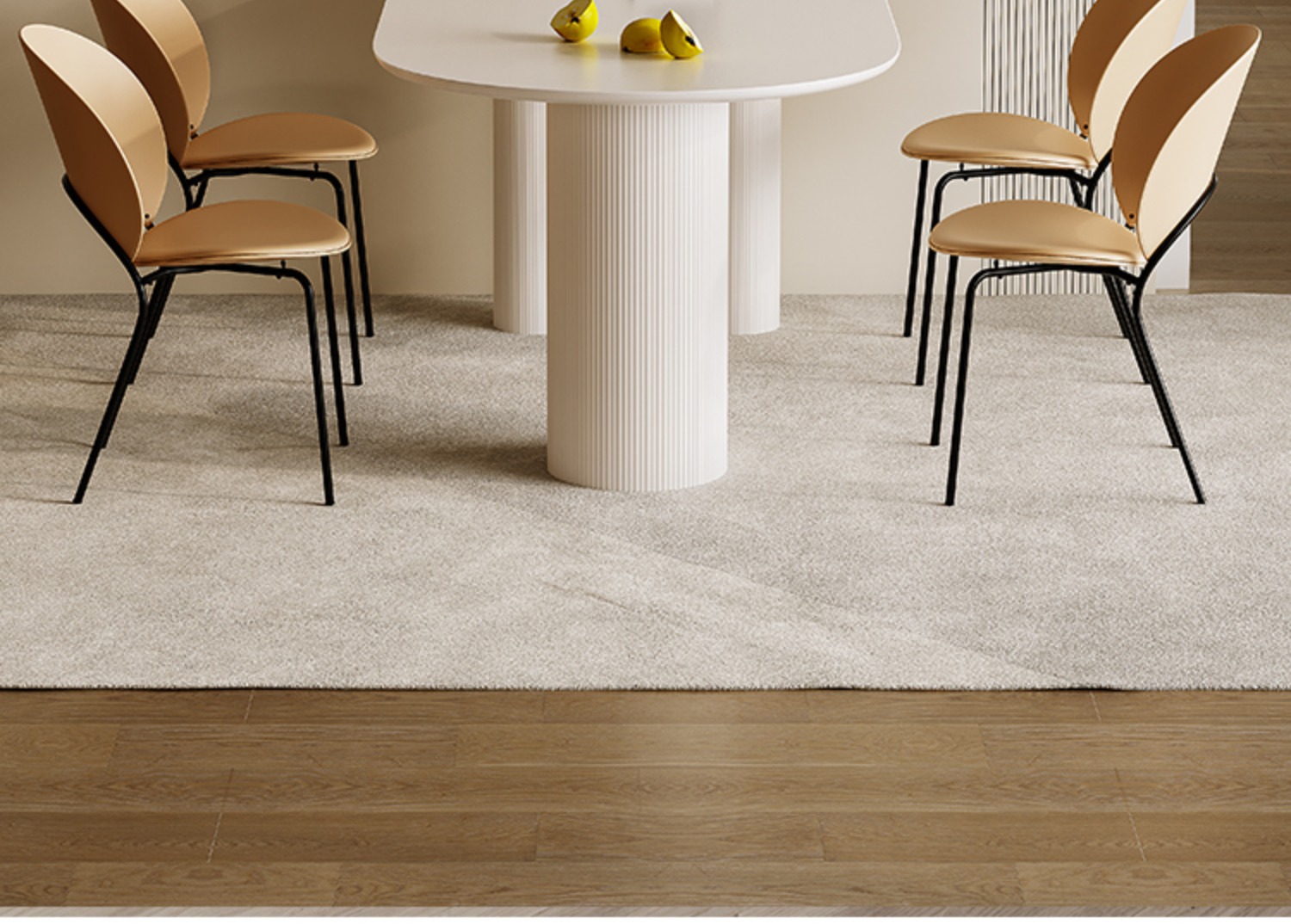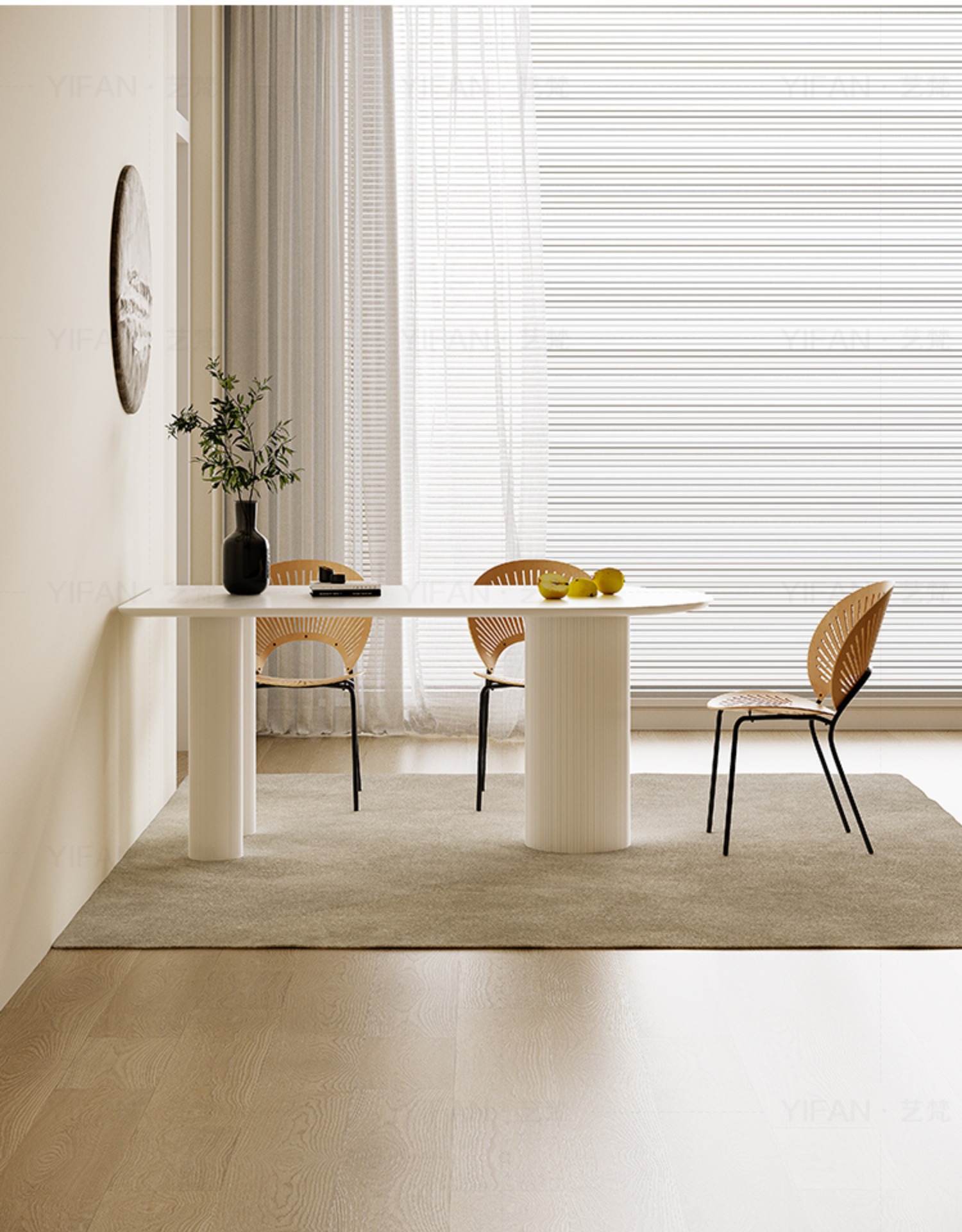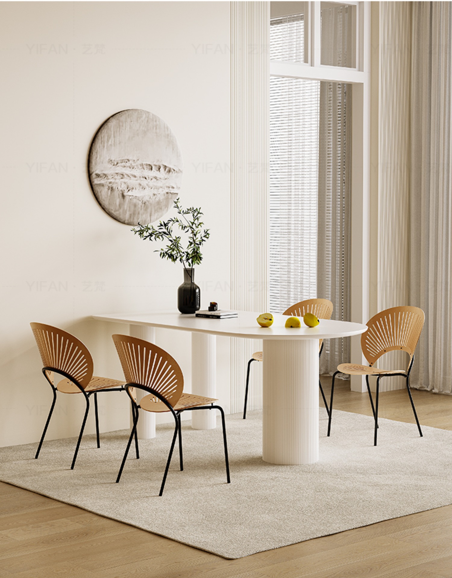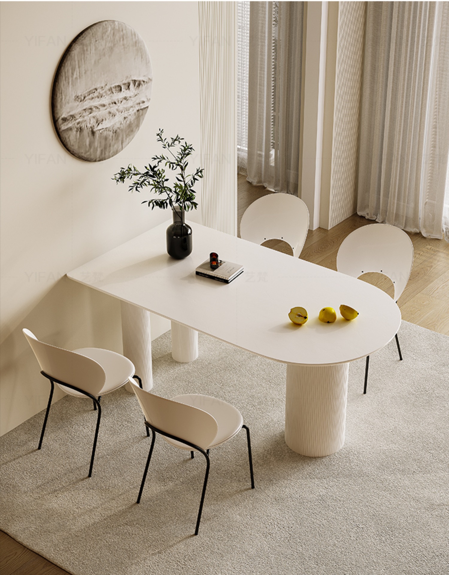 Bàn ăn kết hợp bàn ghế đá gió màu kem Pháp căn hộ nhỏ ánh sáng sang trọng hiện đại bán đảo gỗ nguyên khối bàn ăn gia đình