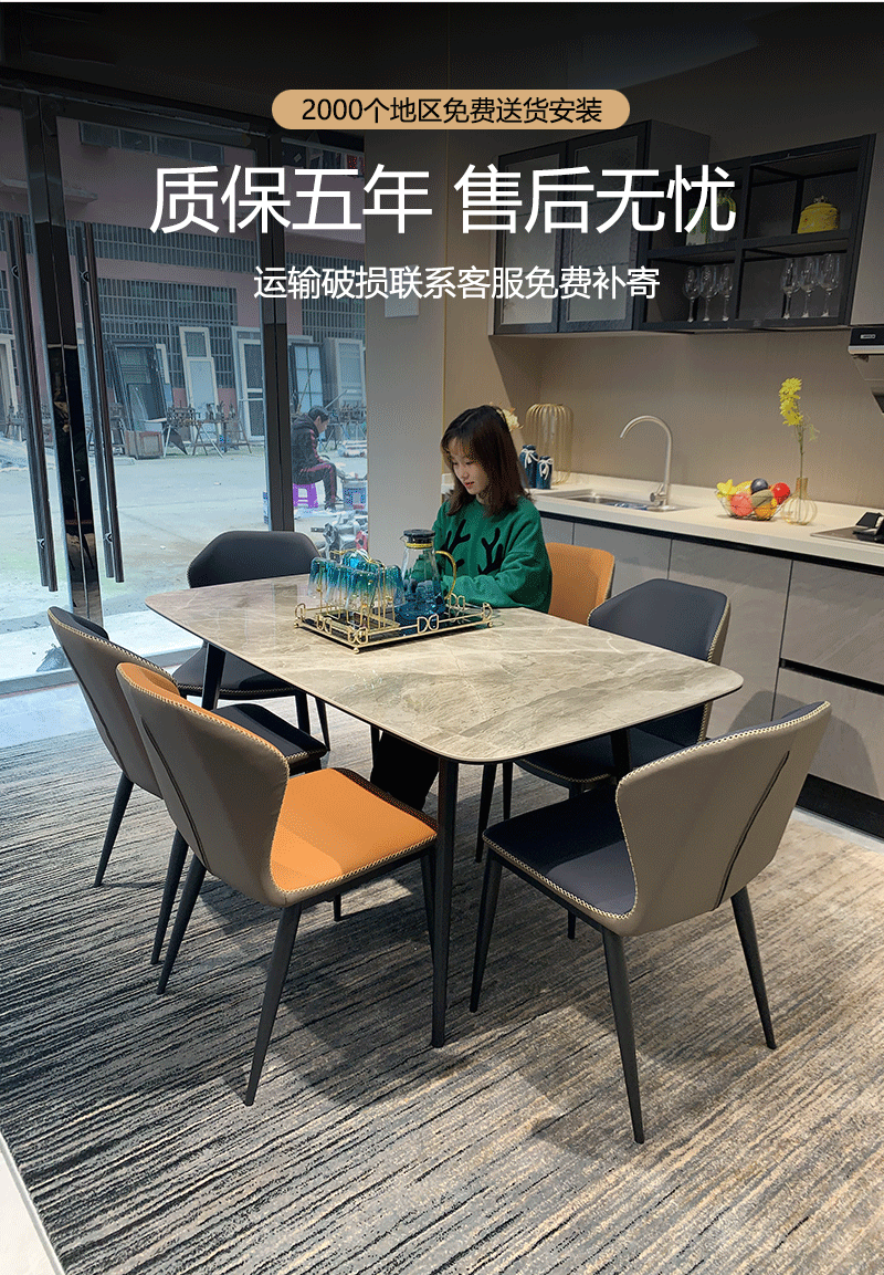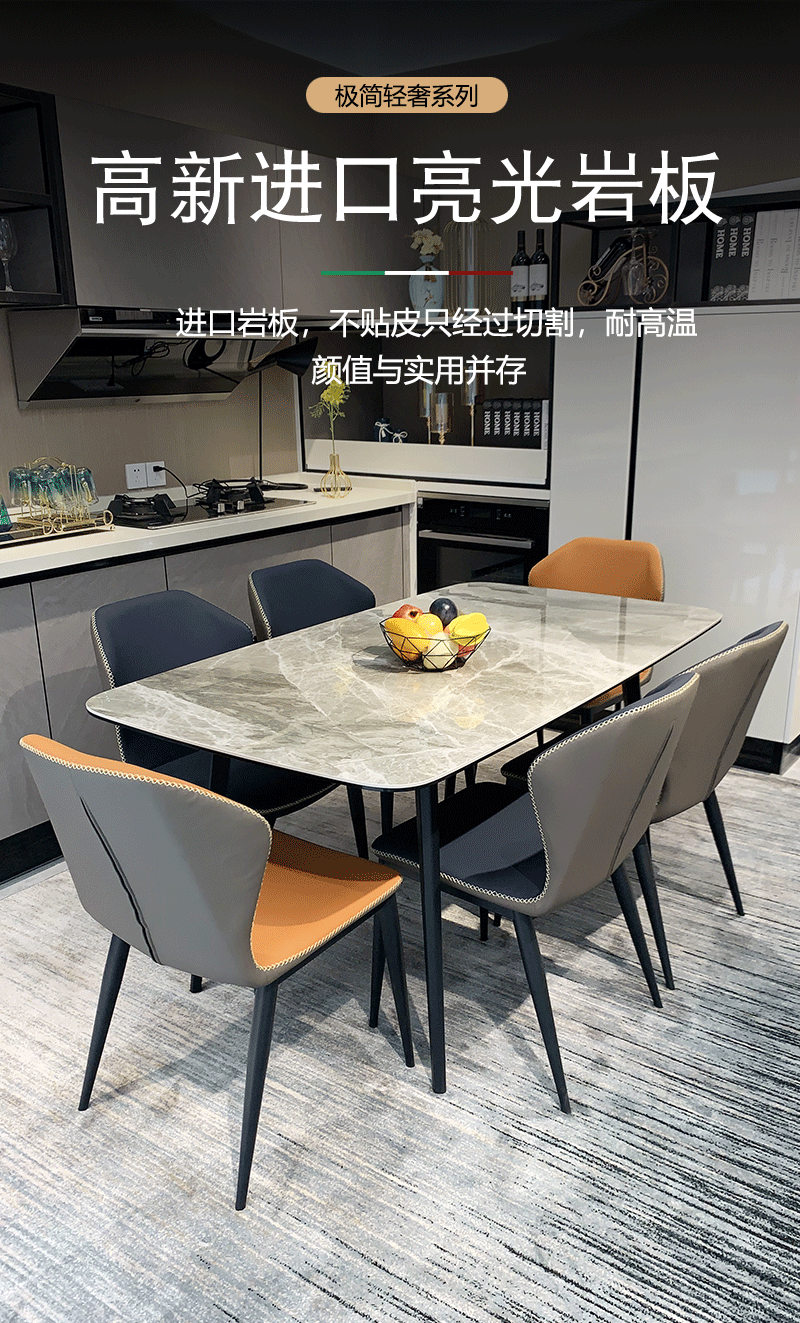 Bàn ăn kết hợp ghế đá đơn giản kiểu Ý mặt đá đơn giản hiện đại bán buôn sáng sủa căn hộ cao cấp bàn ăn gia đình chữ nhật – Bàn ăn nhập khẩu cao cấp