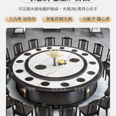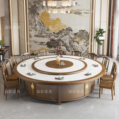 Bàn ăn khách sạn bàn tròn điện lớn gỗ đặc có bàn xoay 20 người hộp khách sạn kết hợp bàn ăn và ghế đá tấm đá Trung Quốc mới là sản phẩm nổi bật trong dòng bàn ăn nhập khẩu, thiết kế hiện đại và sang trọng, phù hợp với nhiều không gian nội thất cao cấp.