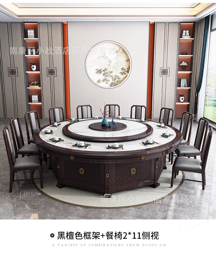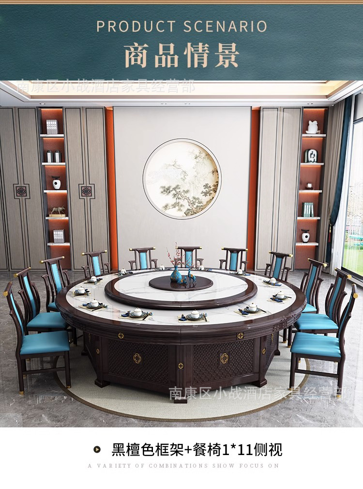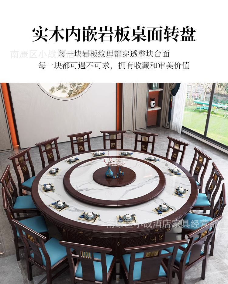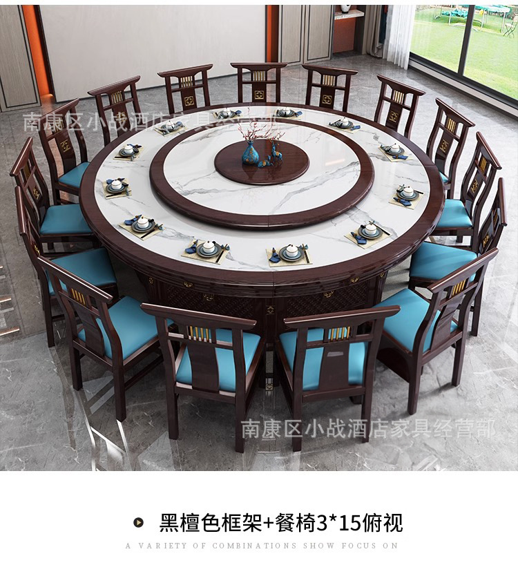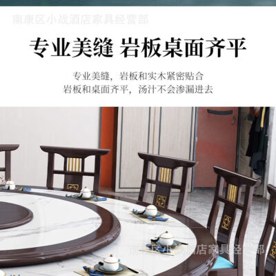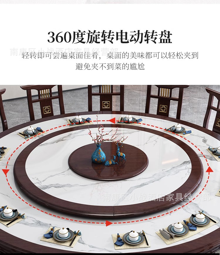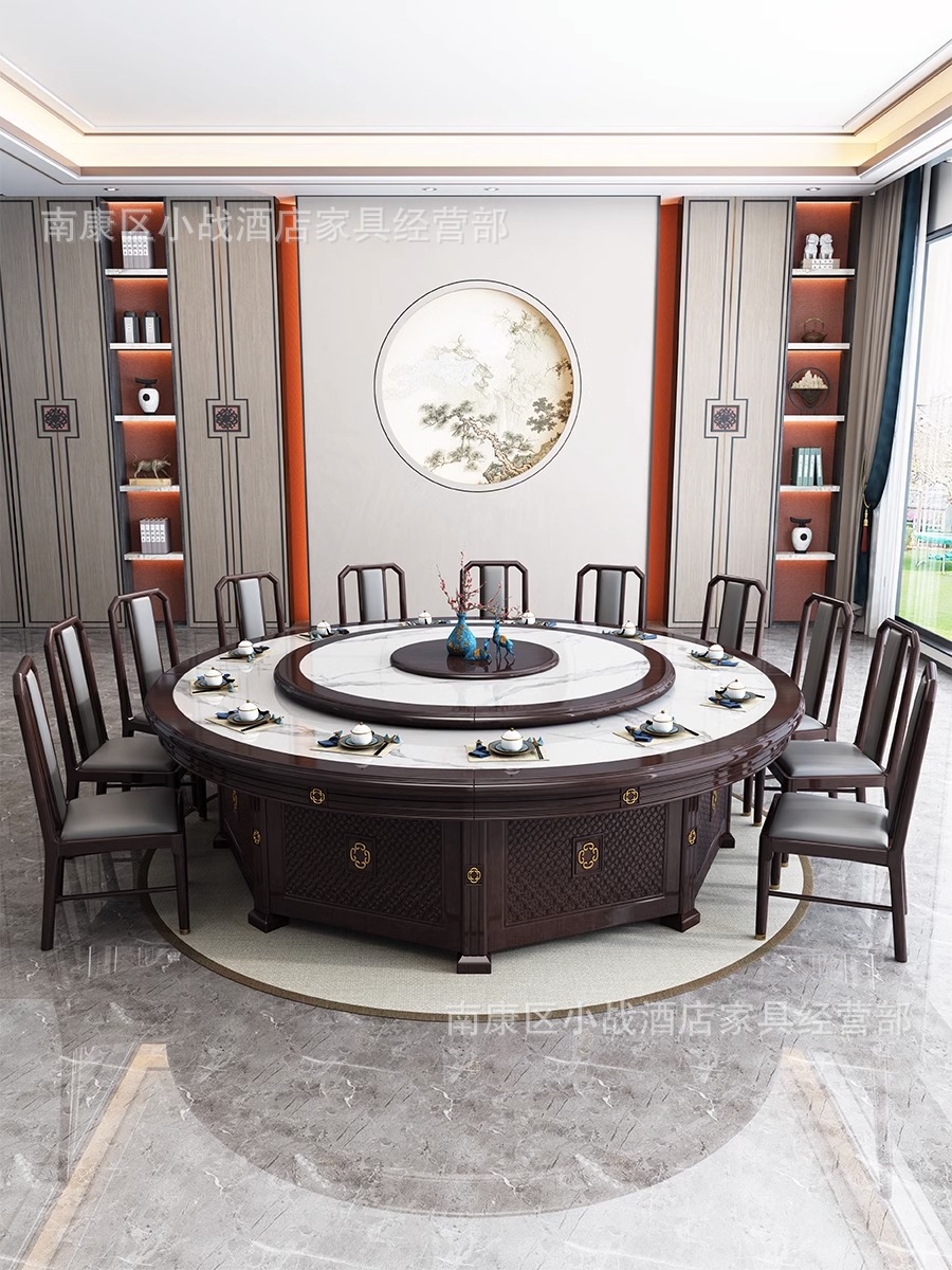 Bàn ăn khách sạn bàn tròn lớn 15 người hộp tiệc bàn ăn xoay tự động đá phiến kiểu Trung Quốc mới Bàn ăn đá cẩm thạch hiện đại đơn giản