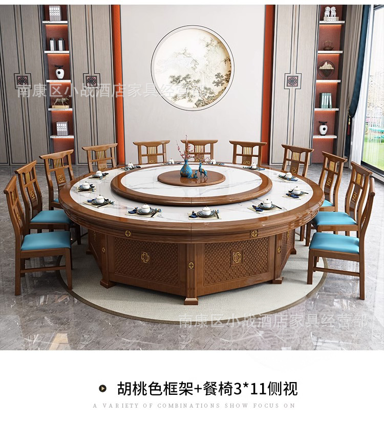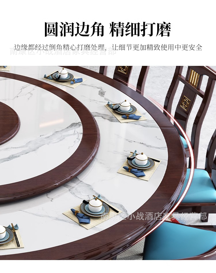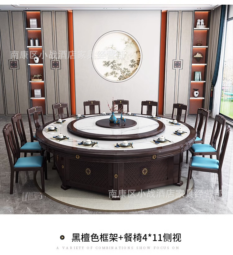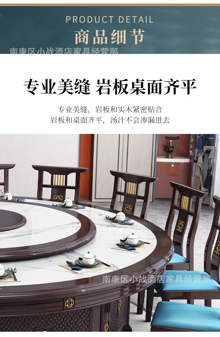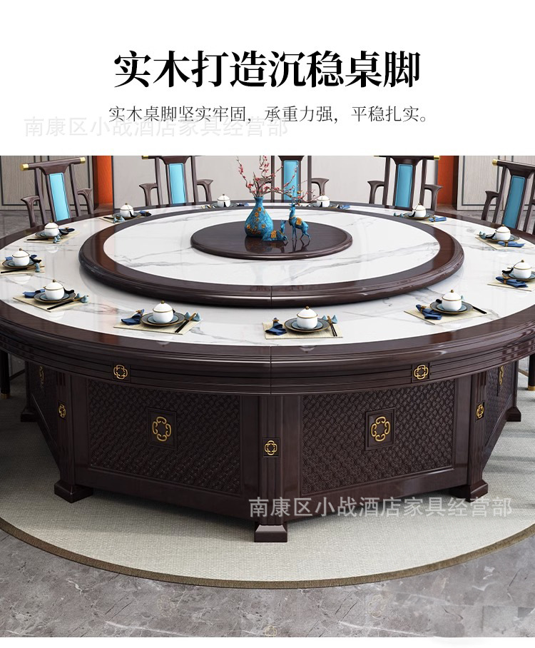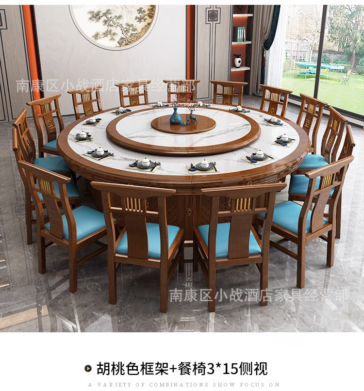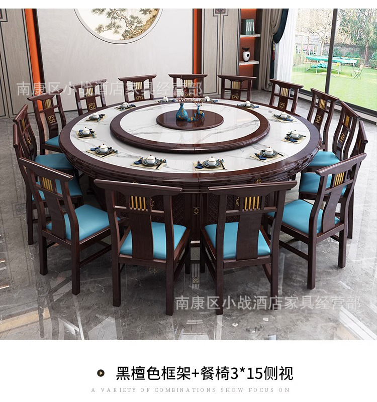 Bàn ăn khách sạn bàn tròn lớn 15 người hộp tiệc bàn ăn xoay tự động đá phiến kiểu Trung Quốc mới Bàn ăn đá cẩm thạch hiện đại đơn giản