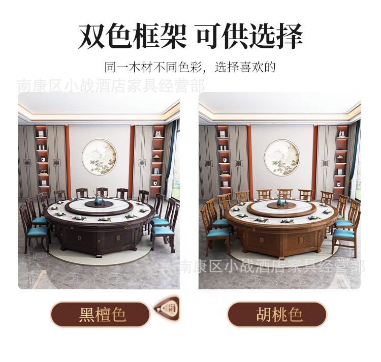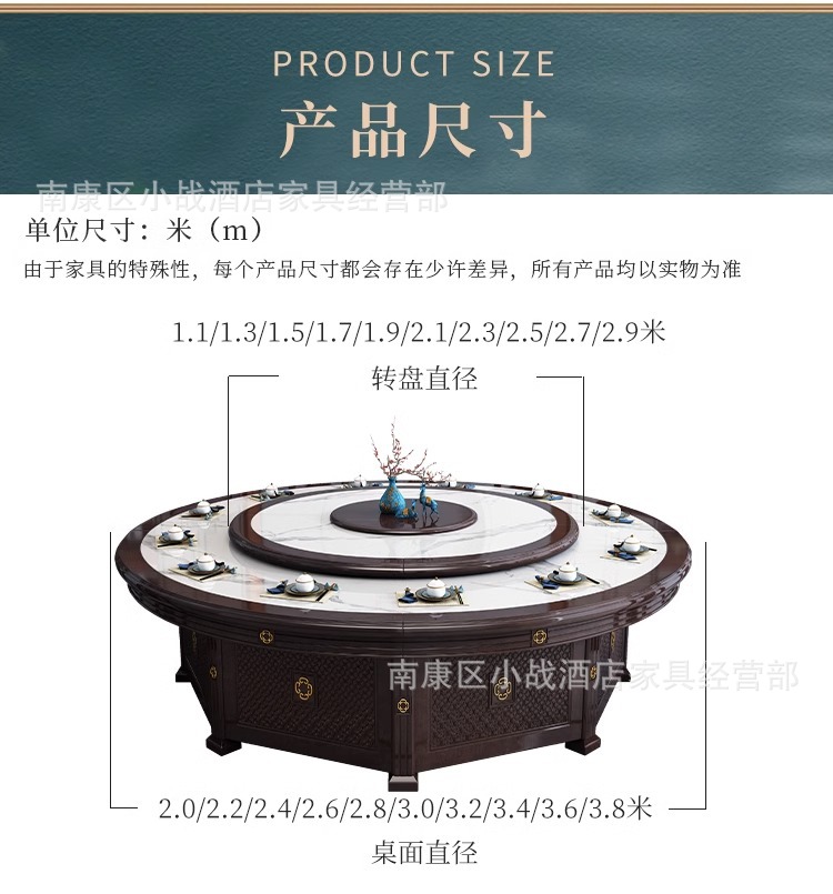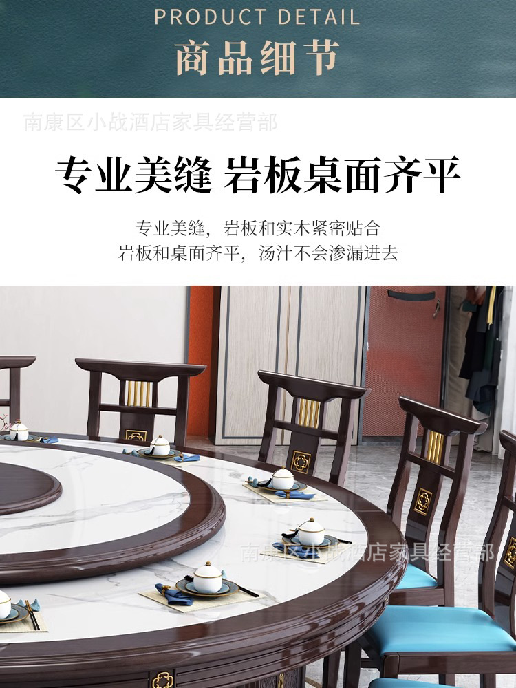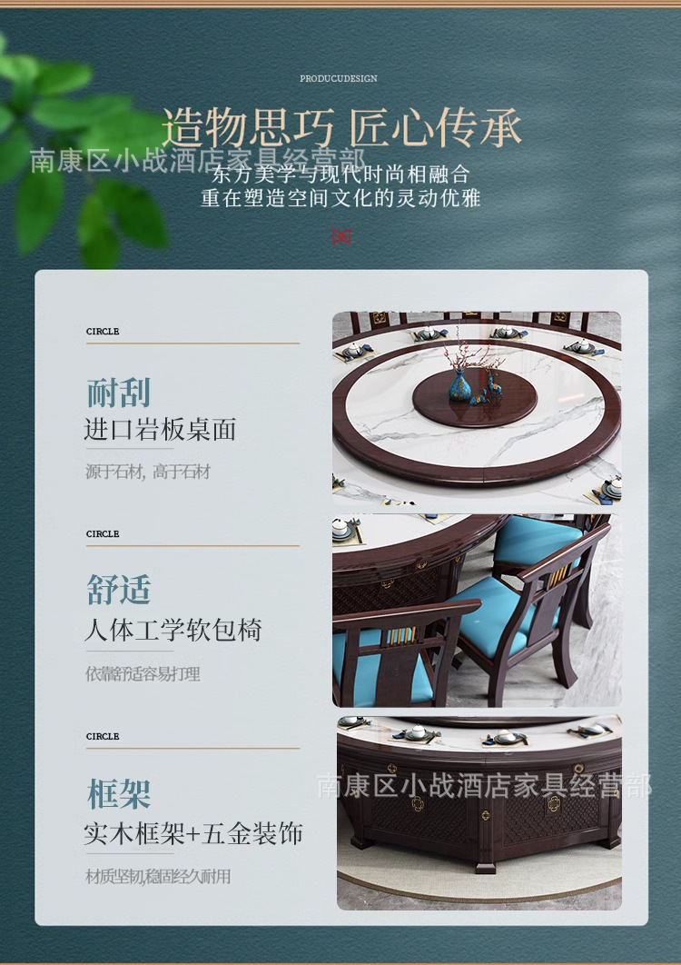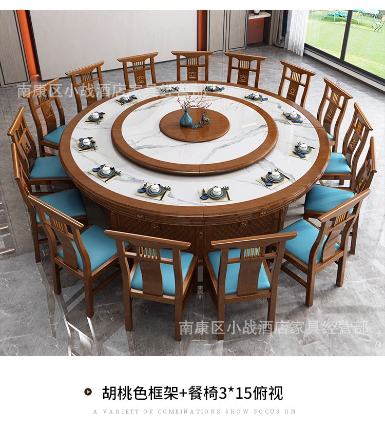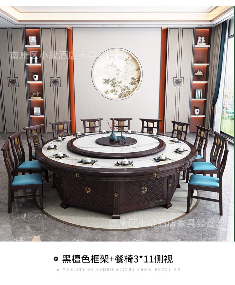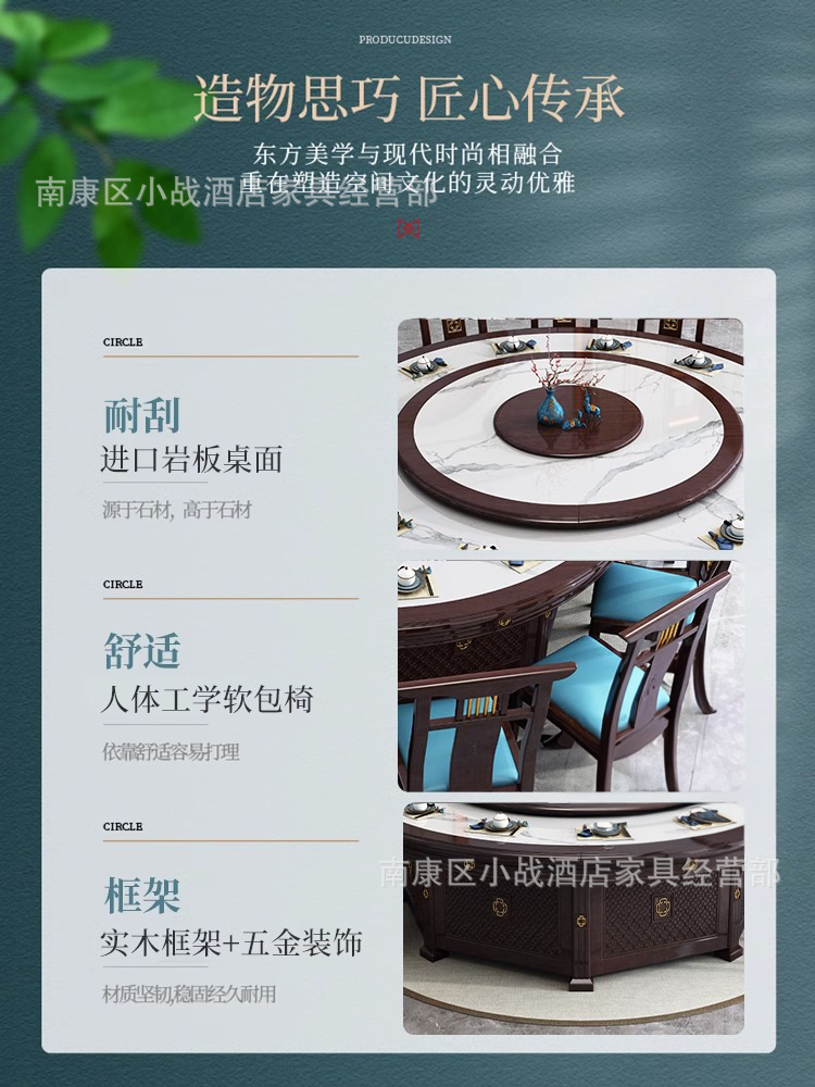 Bàn ăn khách sạn bàn tròn lớn 15 người hộp tiệc bàn ăn xoay tự động đá phiến kiểu Trung Quốc mới Bàn ăn đá cẩm thạch hiện đại đơn giản