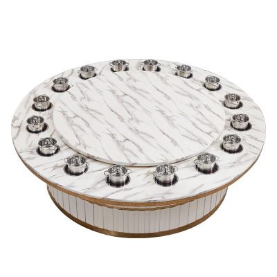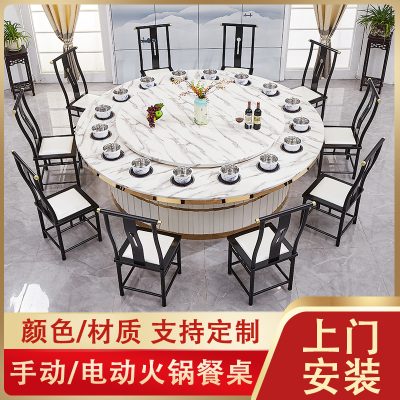 Bàn ăn 20 người Bàn tròn lớn Bàn ăn lẩu Bàn ghế kết hợp bàn xoay điện 15 người 20 người nhà hàng khách sạn.