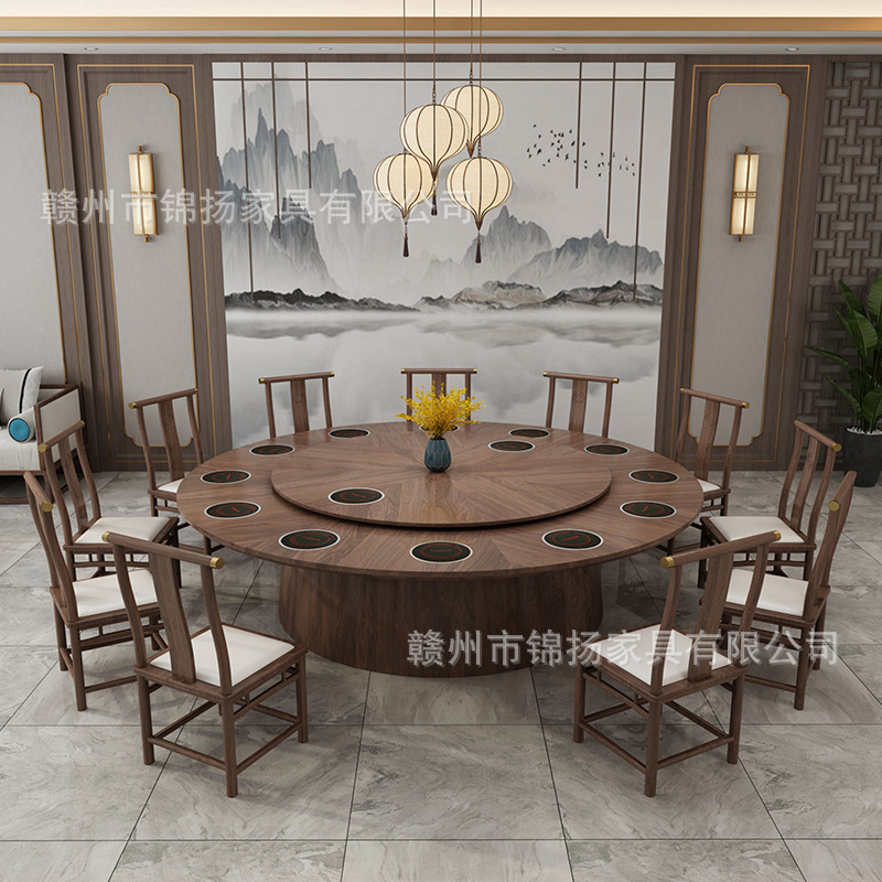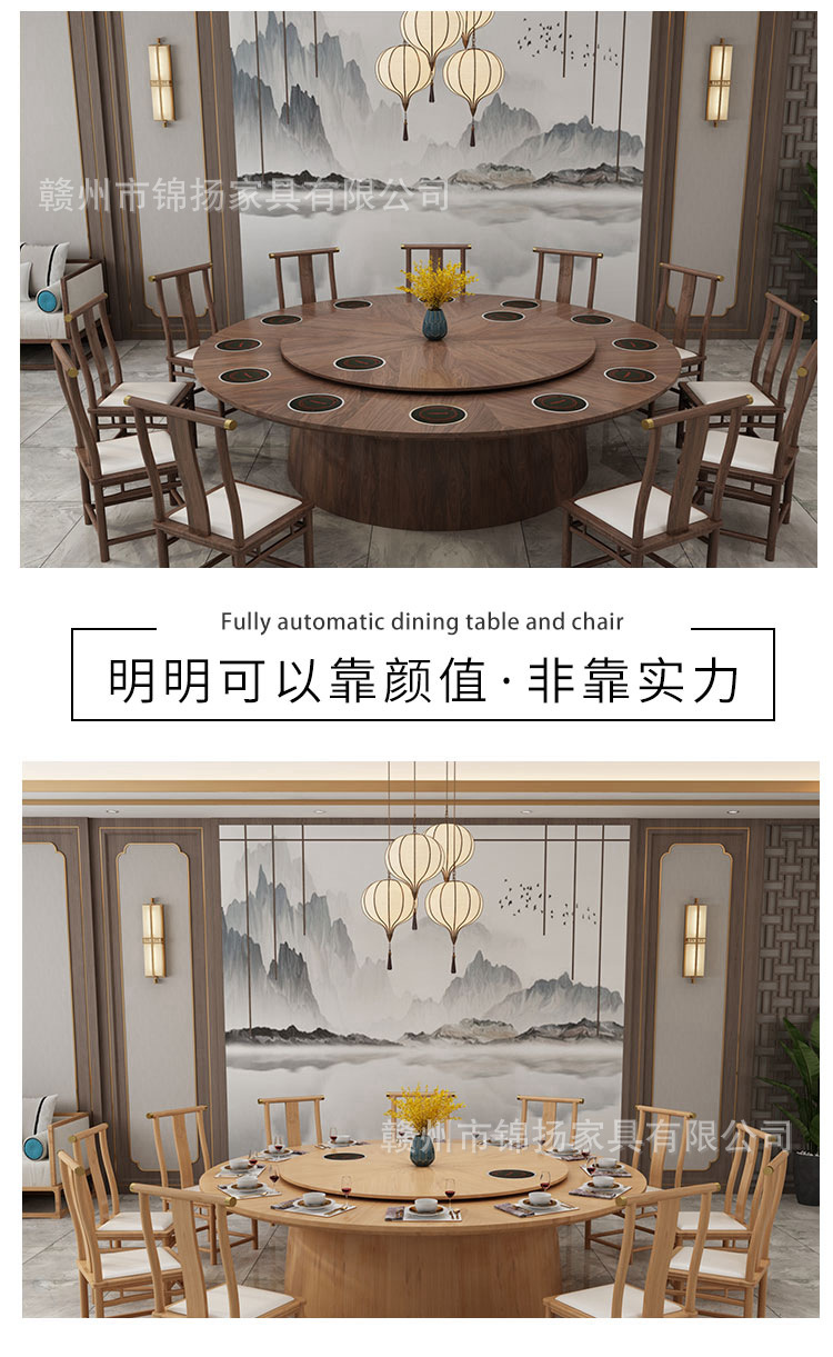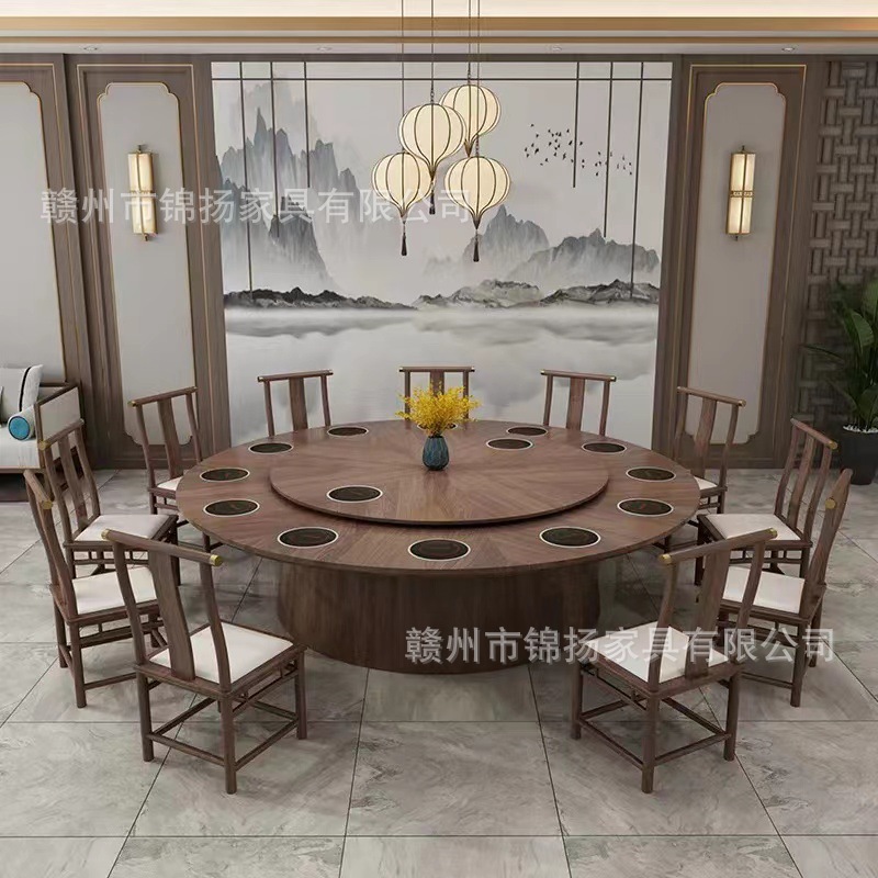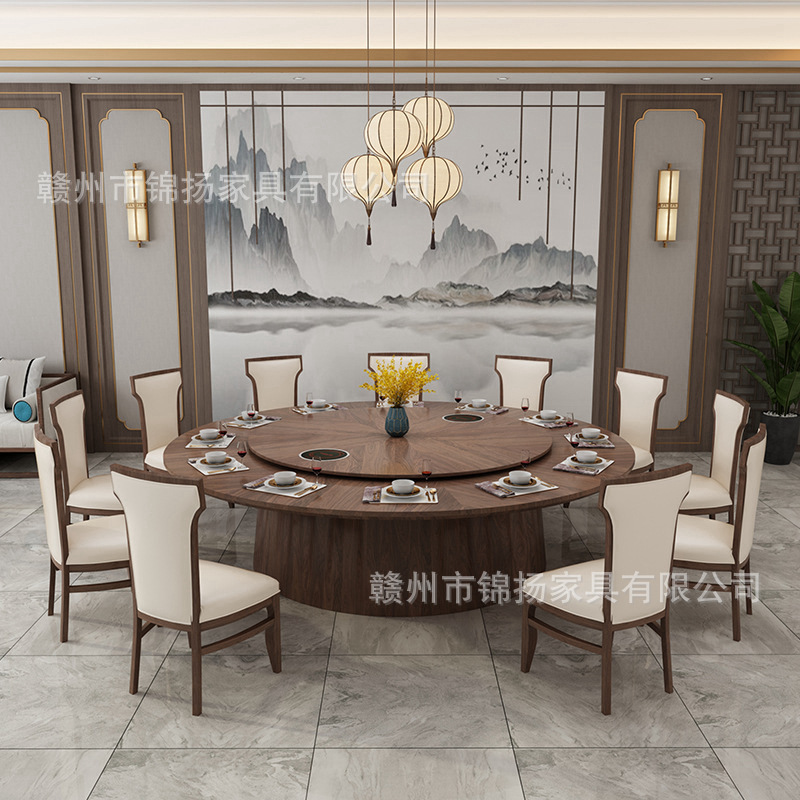 Bàn ăn khách sạn bàn tròn lớn bàn xoay tự động bàn ăn cao cấp 10 người dày 20 người bàn ăn mới đa năng