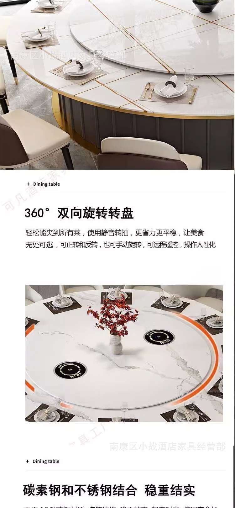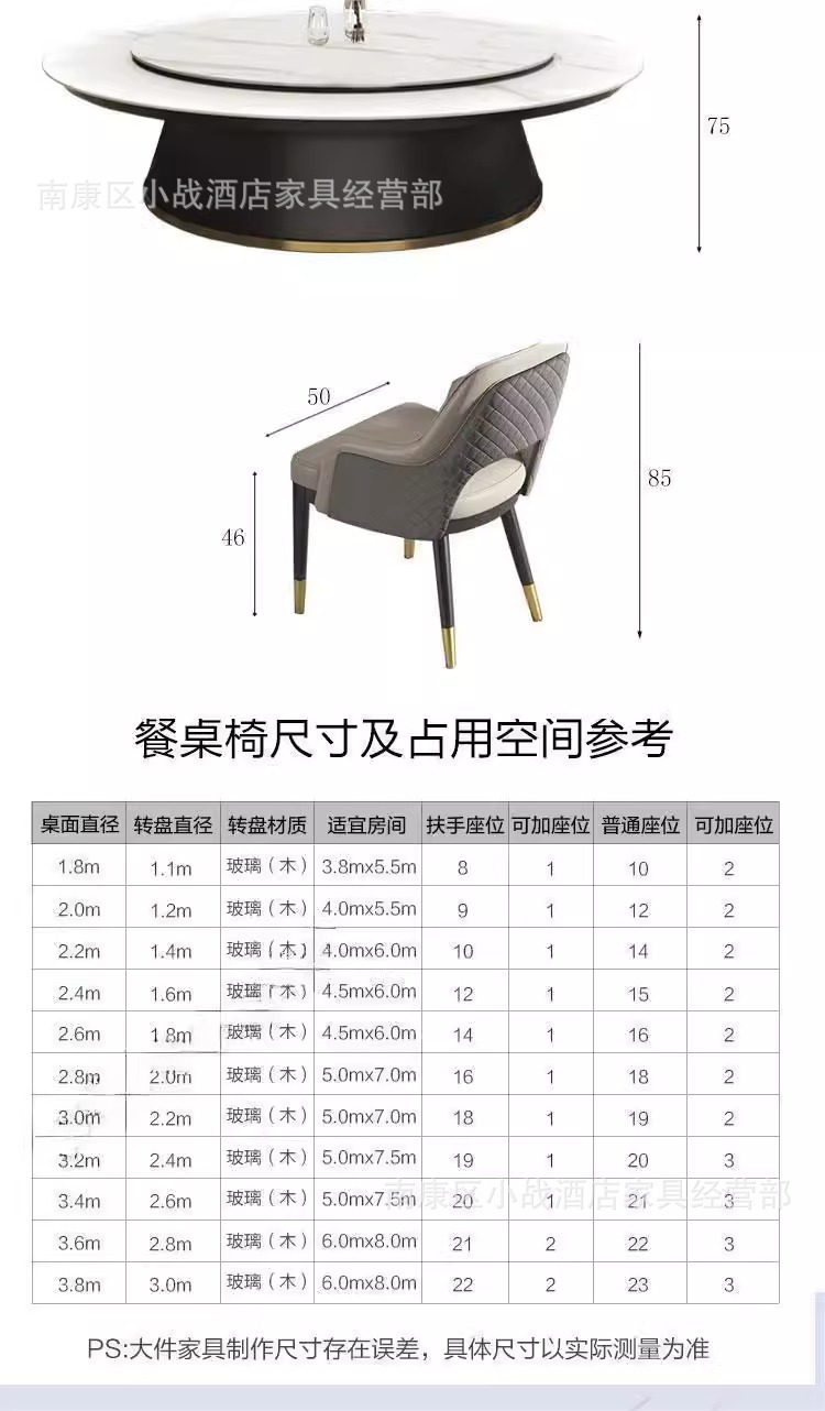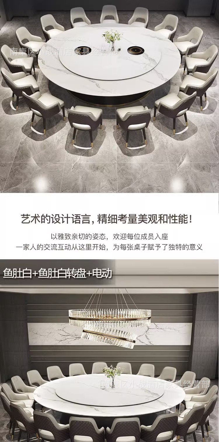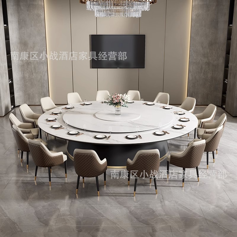 Bàn ăn khách sạn Bàn tròn lớn Câu lạc bộ sang trọng Bàn ăn 20 người có bàn xoay Bàn ăn đá xoay tự động 16 người Bàn ăn riêng