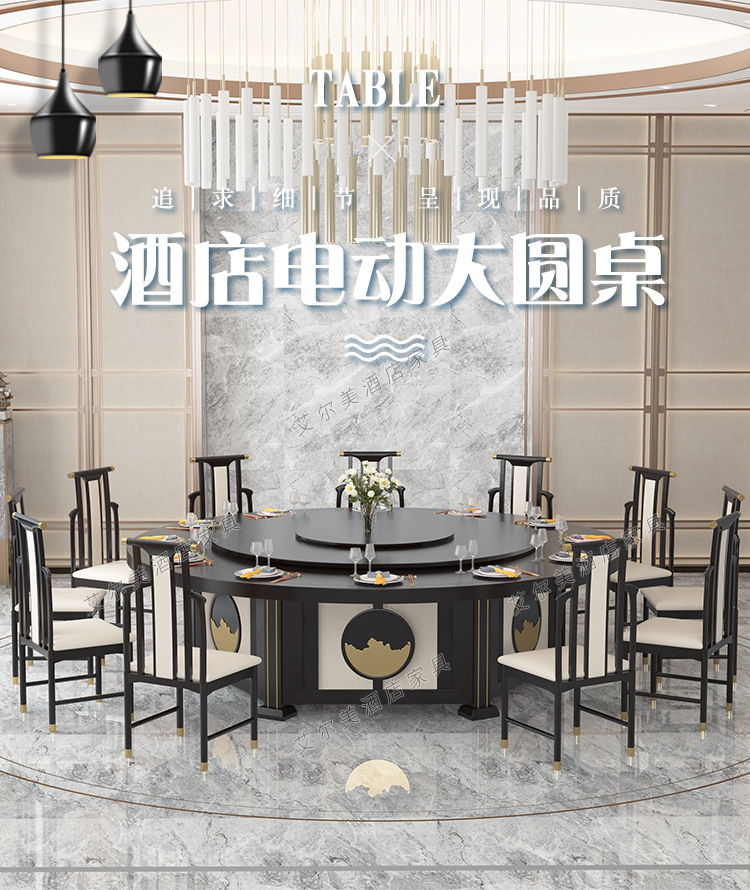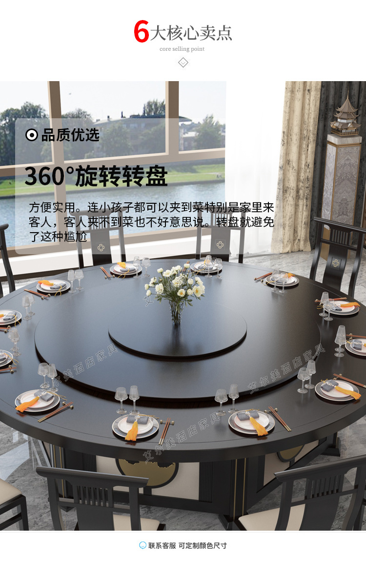 Bàn ăn khách sạn Bàn tròn lớn chạy điện có bàn xoay 15 người 20 người Bàn tròn khách sạn tiệc doanh nhân Bàn ghế lẩu Trung Quốc