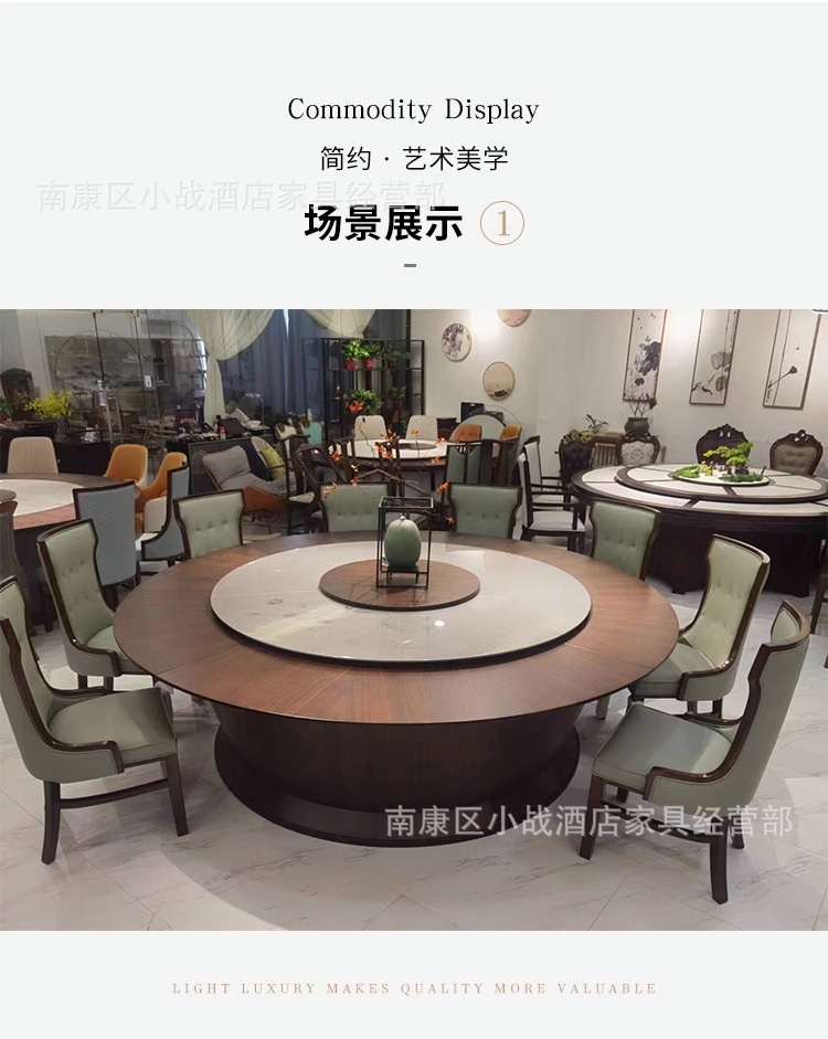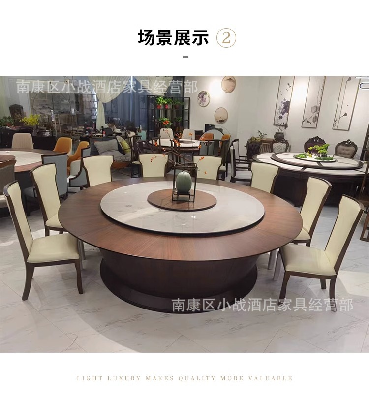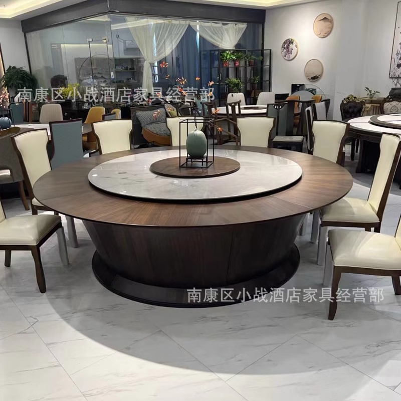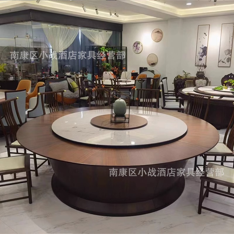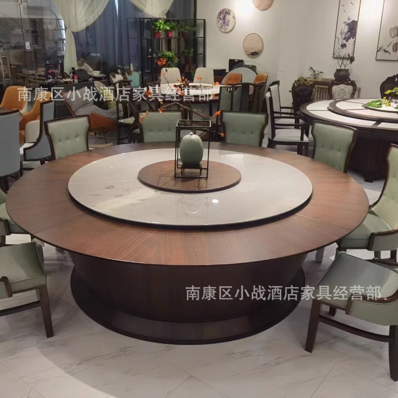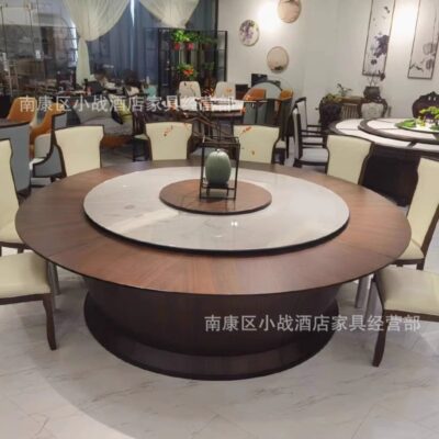 Bàn ăn khách sạn bàn tròn lớn xoay tự động gỗ nguyên khối Bàn ghế khách sạn kết hợp nhà hàng hộp thương mại 15 người 20 người ván đá
