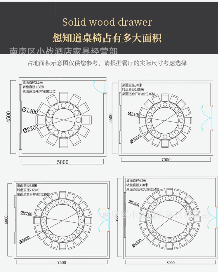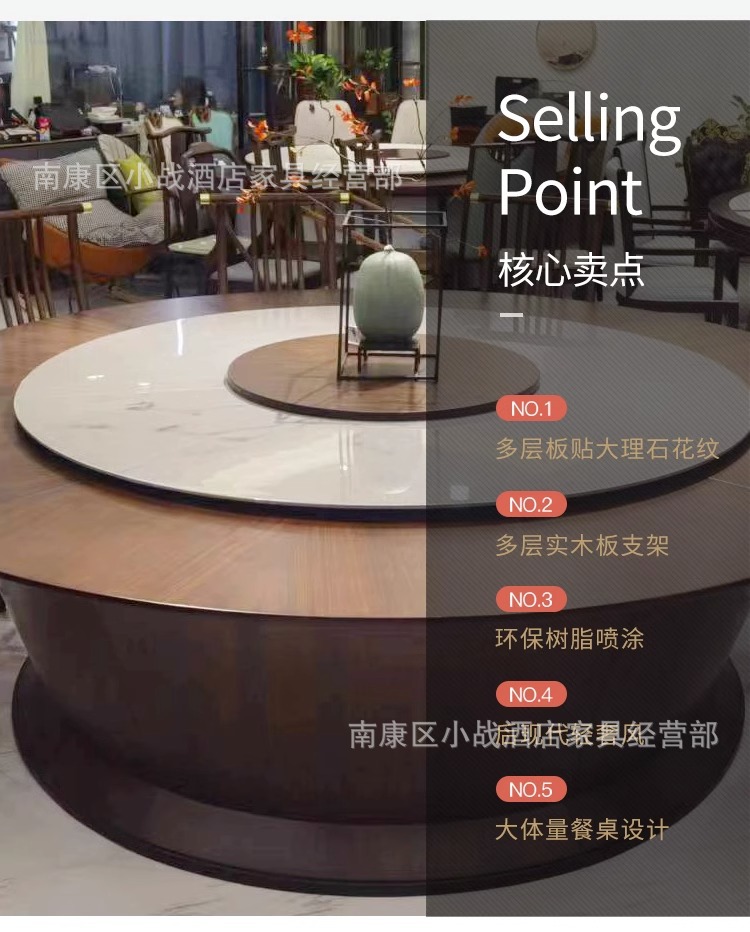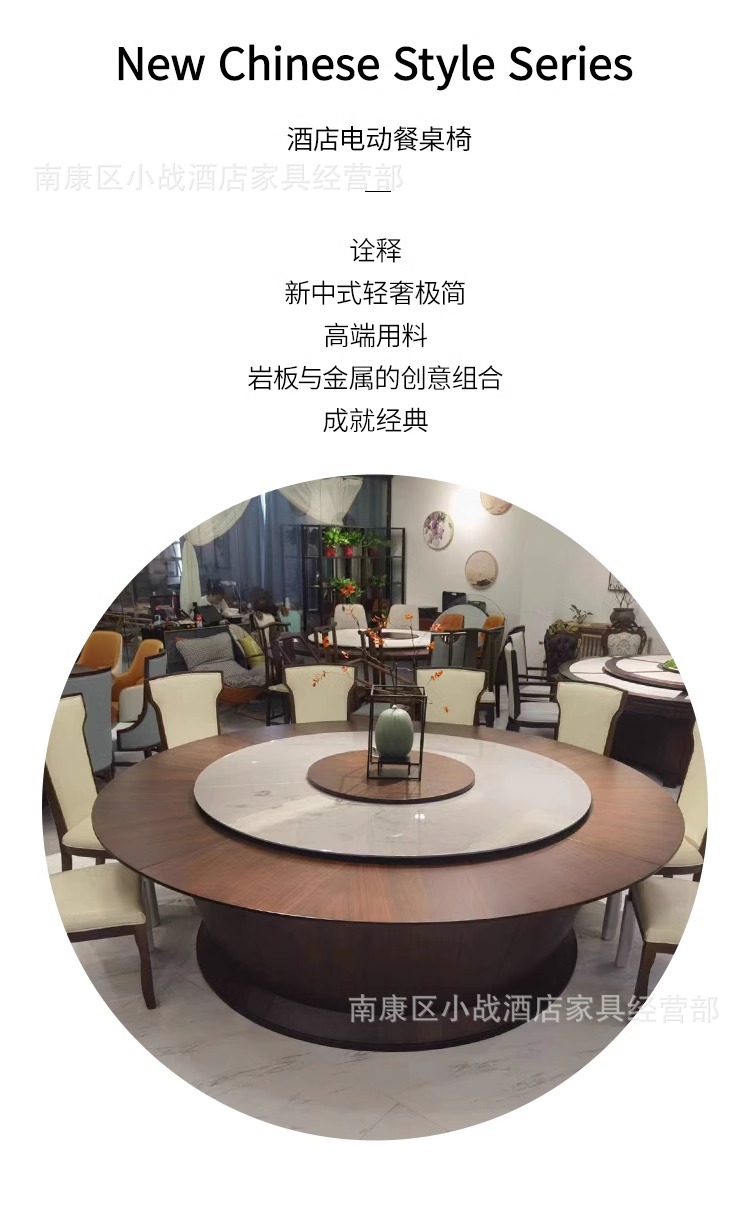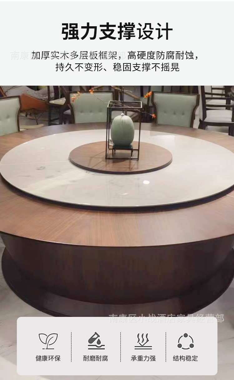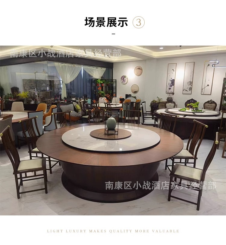 Bàn ăn khách sạn bàn tròn lớn xoay tự động gỗ nguyên khối Bàn ghế khách sạn kết hợp nhà hàng hộp thương mại 15 người 20 người ván đá