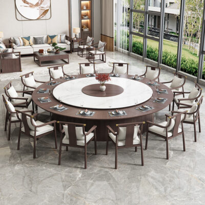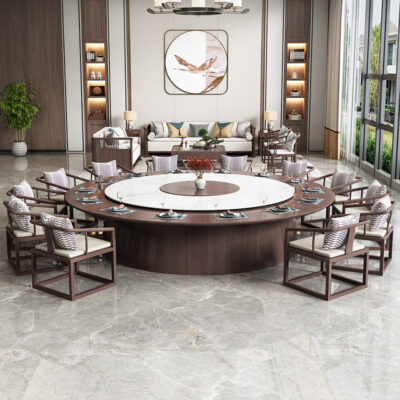 Bàn ăn khách sạn bàn tròn xoay tự động lớn bàn ghế câu lạc bộ nhà hàng Trung Quốc mới 10-30 người Bộ bàn ghế ăn đầy đủ