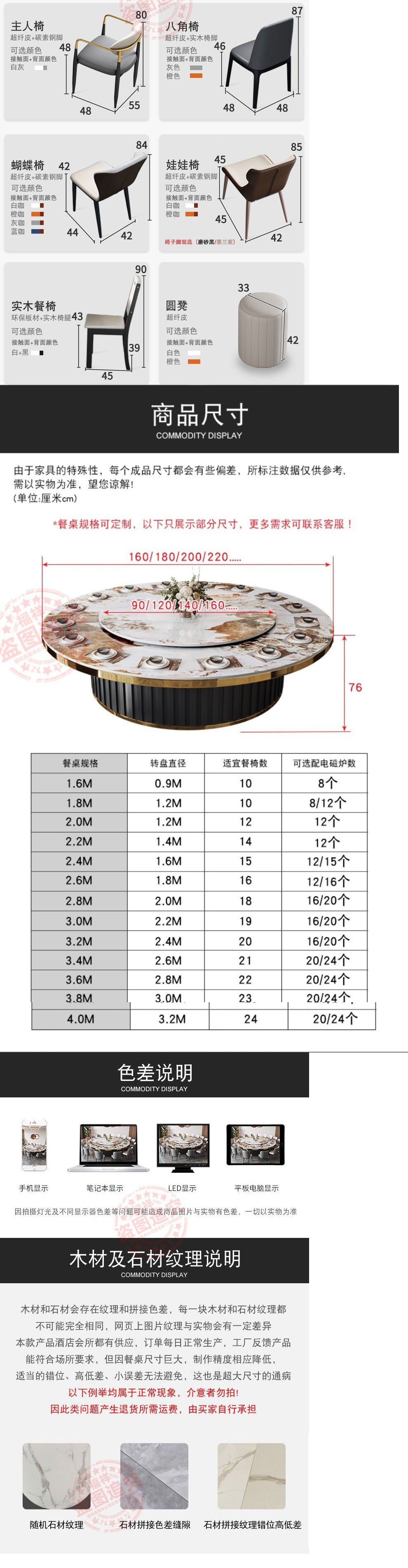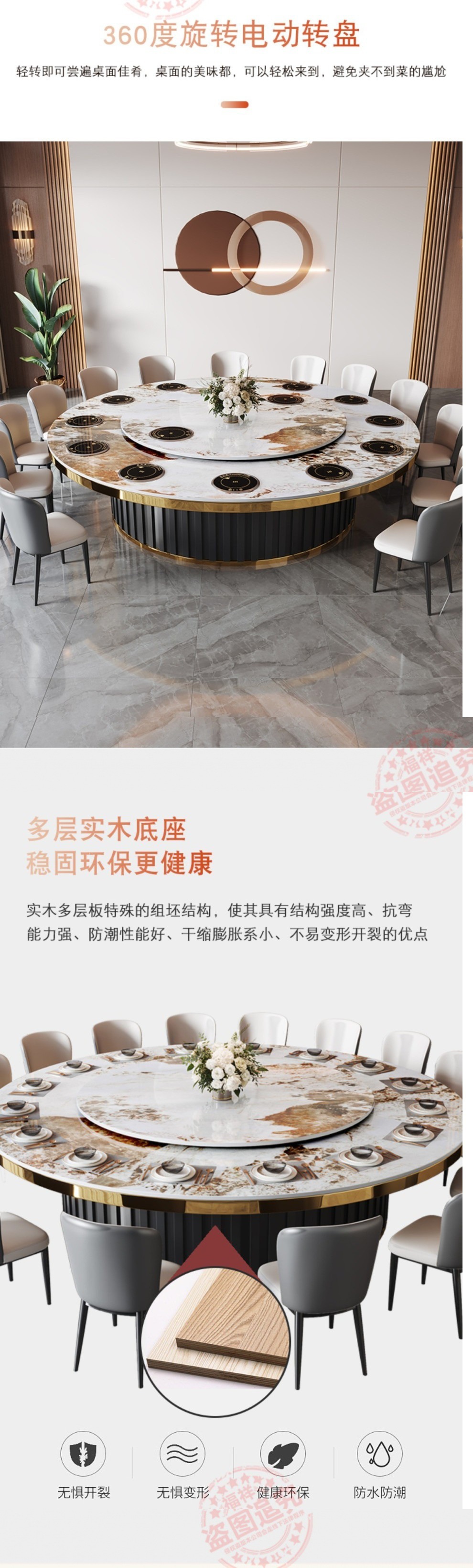 Bàn ăn khách sạn đèn điện sang trọng phiến đá bàn tròn lớn tại nhà bàn ăn tròn câu lạc bộ doanh nhân 15 người bàn ăn lẩu 20 người – Bàn ăn nhập khẩu cao cấp