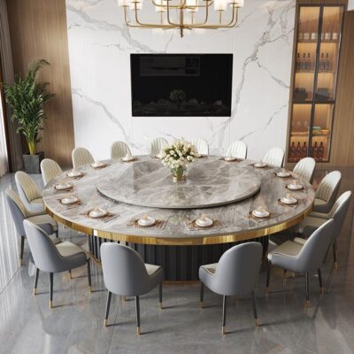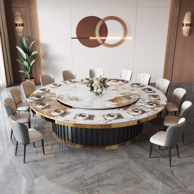 Bàn ăn khách sạn đèn điện sang trọng phiến đá bàn tròn lớn tại nhà bàn ăn tròn câu lạc bộ doanh nhân 15 người bàn ăn lẩu 20 người là sản phẩm nổi bật trong dòng bàn ăn nhập khẩu, thiết kế hiện đại và sang trọng, phù hợp với nhiều không gian nội thất cao cấp.