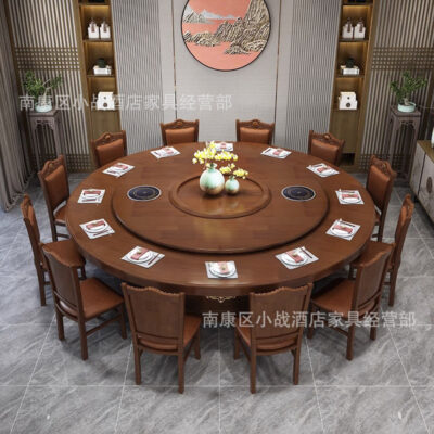 Bàn ăn khách sạn hướng dẫn sử dụng xoay tự động bàn tròn lớn nhà hàng tiệc khách sạn xoay tự động bàn ăn lẩu kiểu Trung Quốc mới cho 20 người