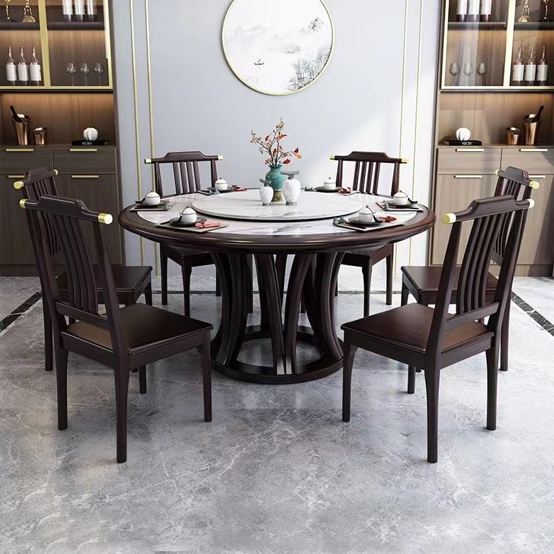 Bàn ăn khách sạn kiểu Trung Quốc mới bàn tròn lớn 18 người 20 người khách sạn Bàn ăn gỗ cứng và ghế bàn lẩu quay điện – Bàn ăn nhập khẩu cao cấp