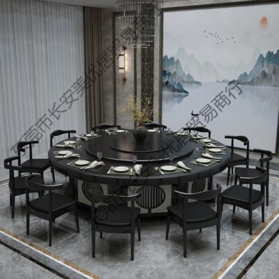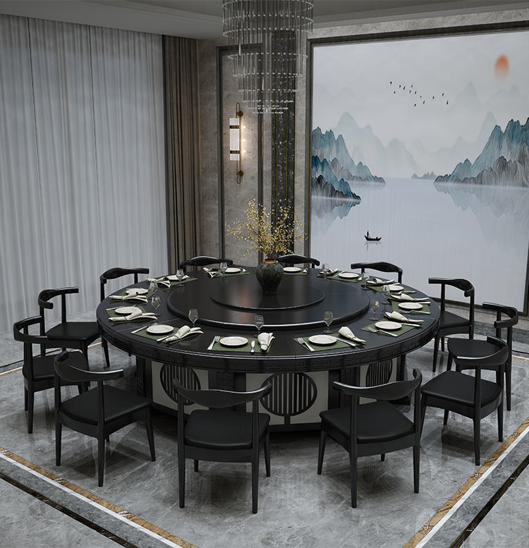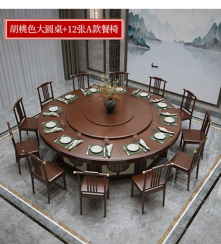 Bàn ăn khách sạn kiểu Trung Quốc mới bàn tròn lớn 18 người 20 người khách sạn Bàn ăn gỗ cứng và ghế bàn lẩu quay điện là sản phẩm nổi bật trong dòng bàn ăn nhập khẩu, thiết kế hiện đại và sang trọng, phù hợp với nhiều không gian nội thất cao cấp.