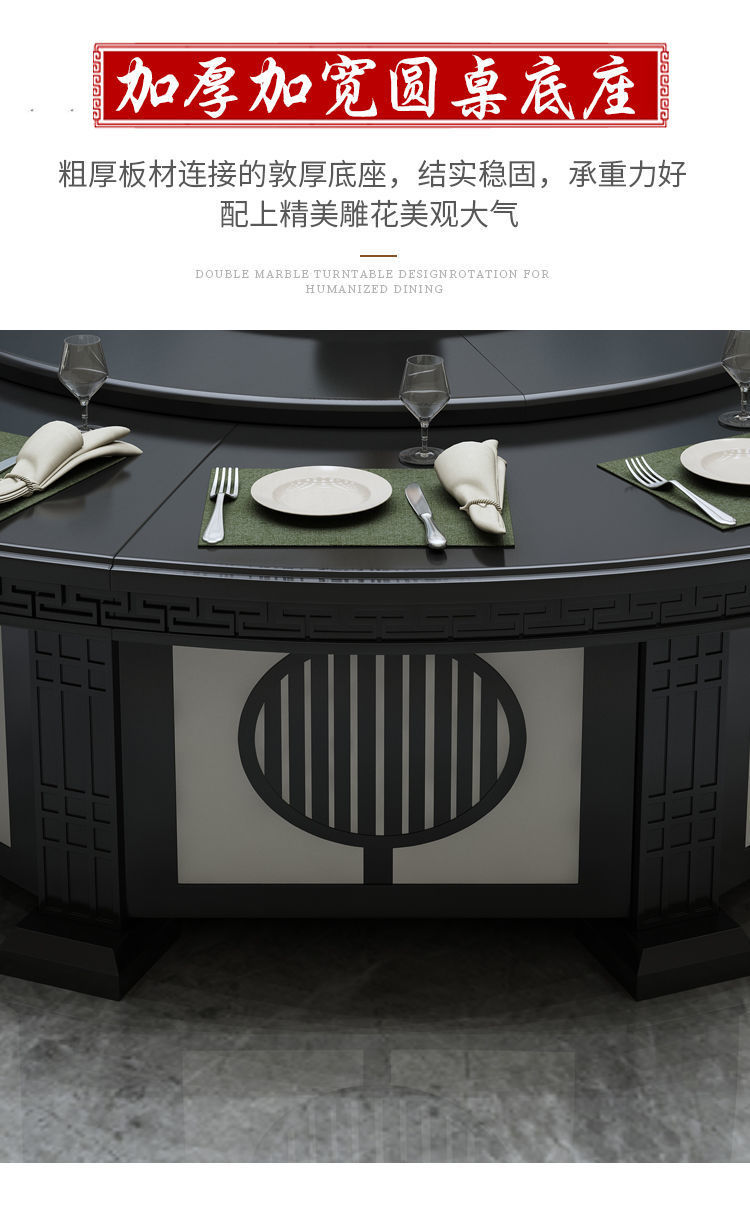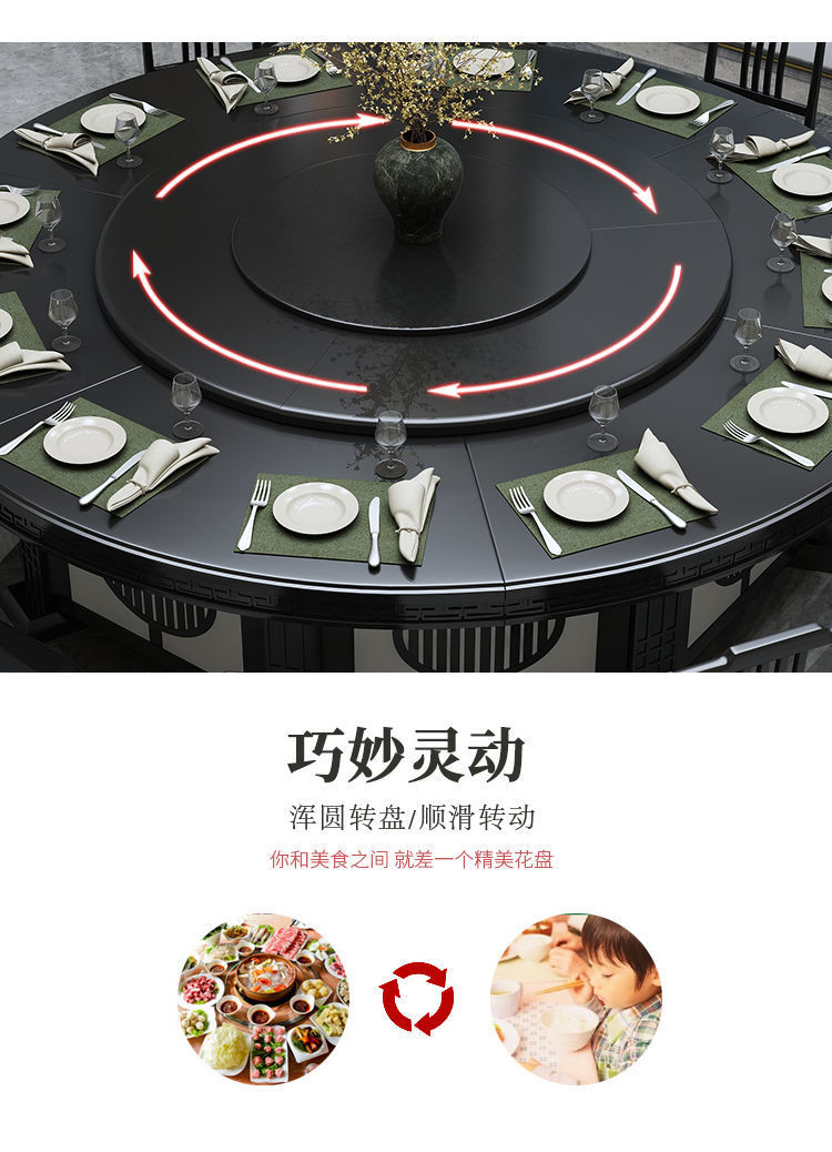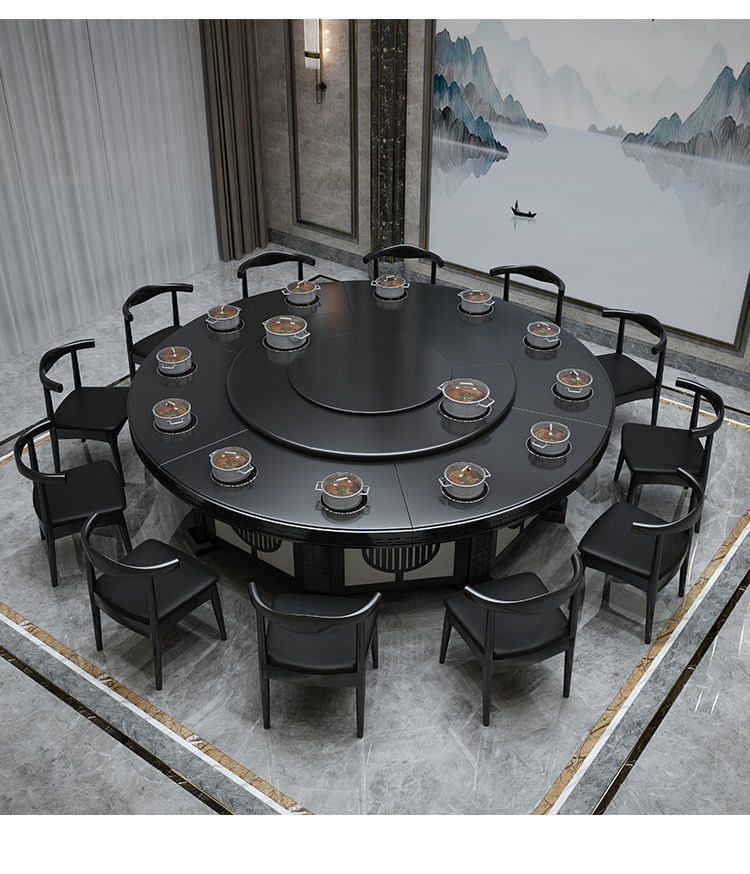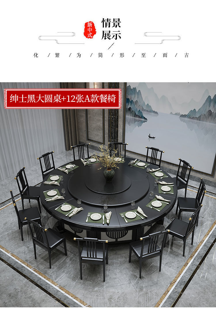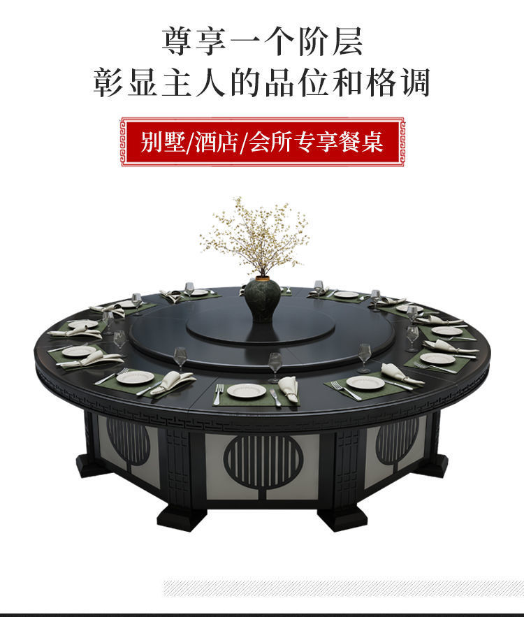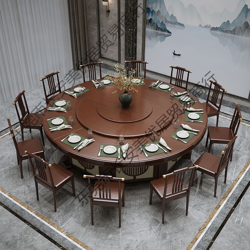 新中式酒店餐桌大圆桌18人20人饭店实木餐桌椅组合电动旋转火锅桌