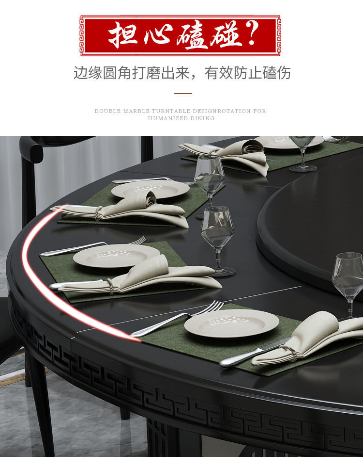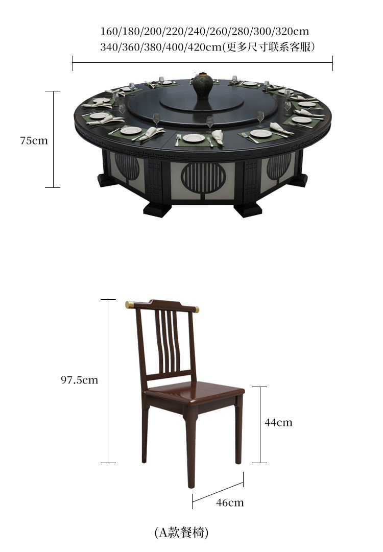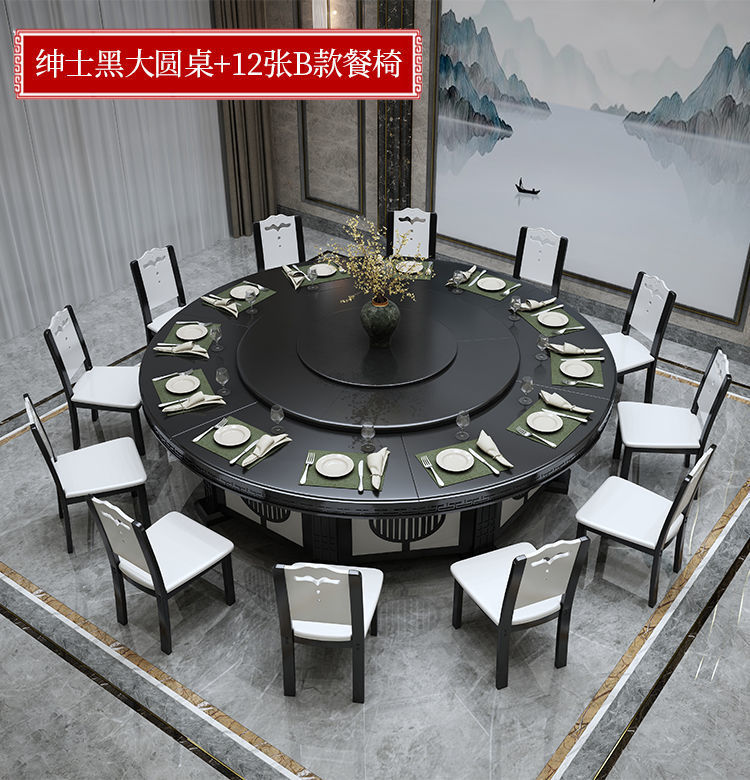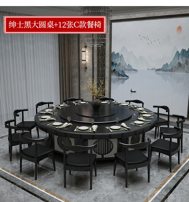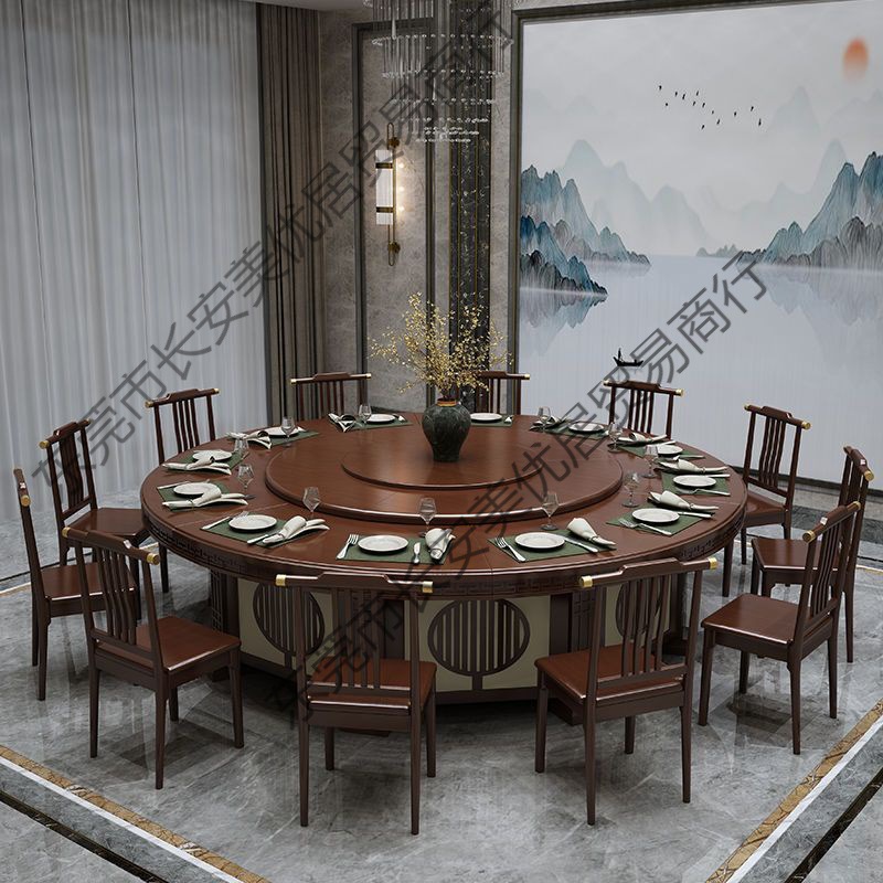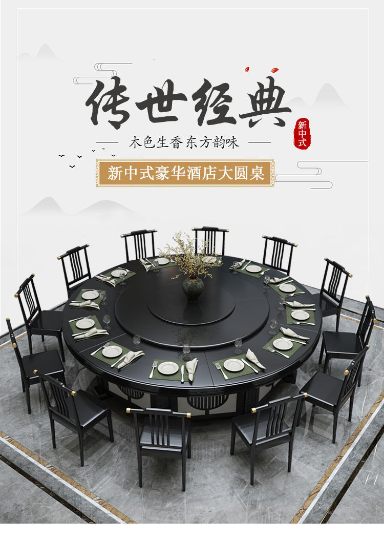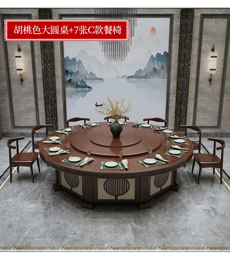 新中式酒店餐桌大圆桌18人20人饭店实木餐桌椅组合电动旋转火锅桌