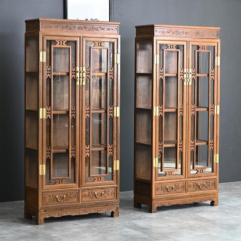 红木家具鸡翅木酒柜中式玻璃酒柜客厅实木展示柜仿古玻璃门陈列柜
