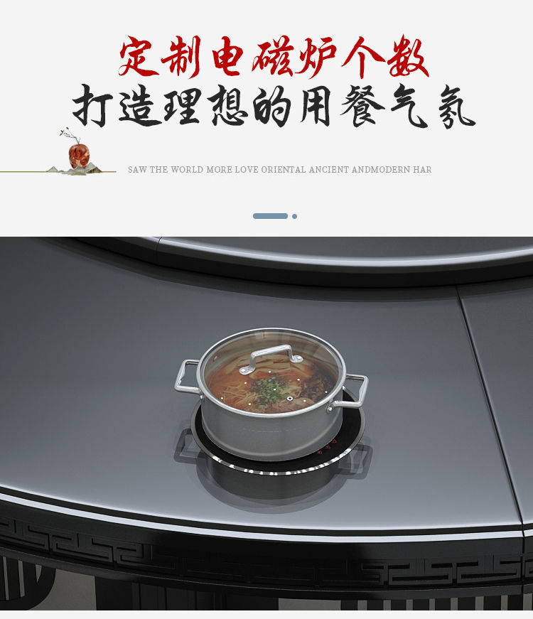 Bàn ăn khách sạn kiểu Trung Quốc mới bàn tròn lớn 18 người 20 người khách sạn Bàn ăn gỗ cứng và ghế bàn lẩu quay điện