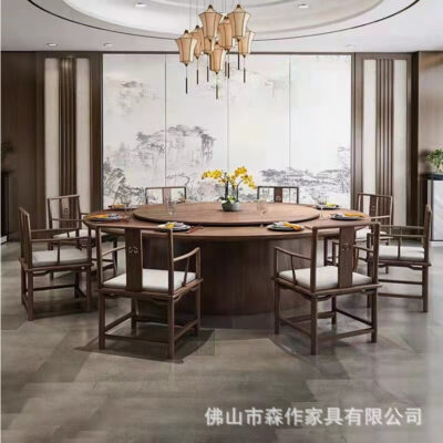 Bàn ăn khách sạn kiểu Trung Quốc mới bàn tròn lớn câu lạc bộ khách sạn 20 người bàn xoay điện phòng tiệc Bàn ăn khách sạn là sản phẩm nổi bật trong dòng bàn ăn nhập khẩu, thiết kế hiện đại và sang trọng, phù hợp với nhiều không gian nội thất cao cấp.