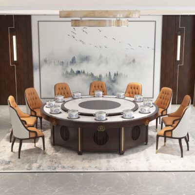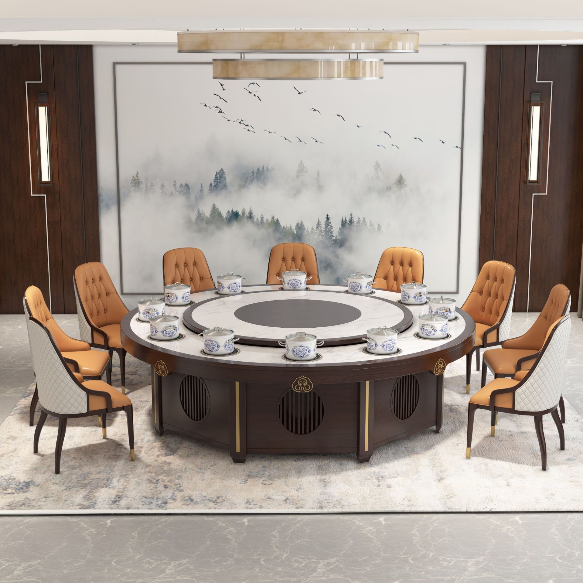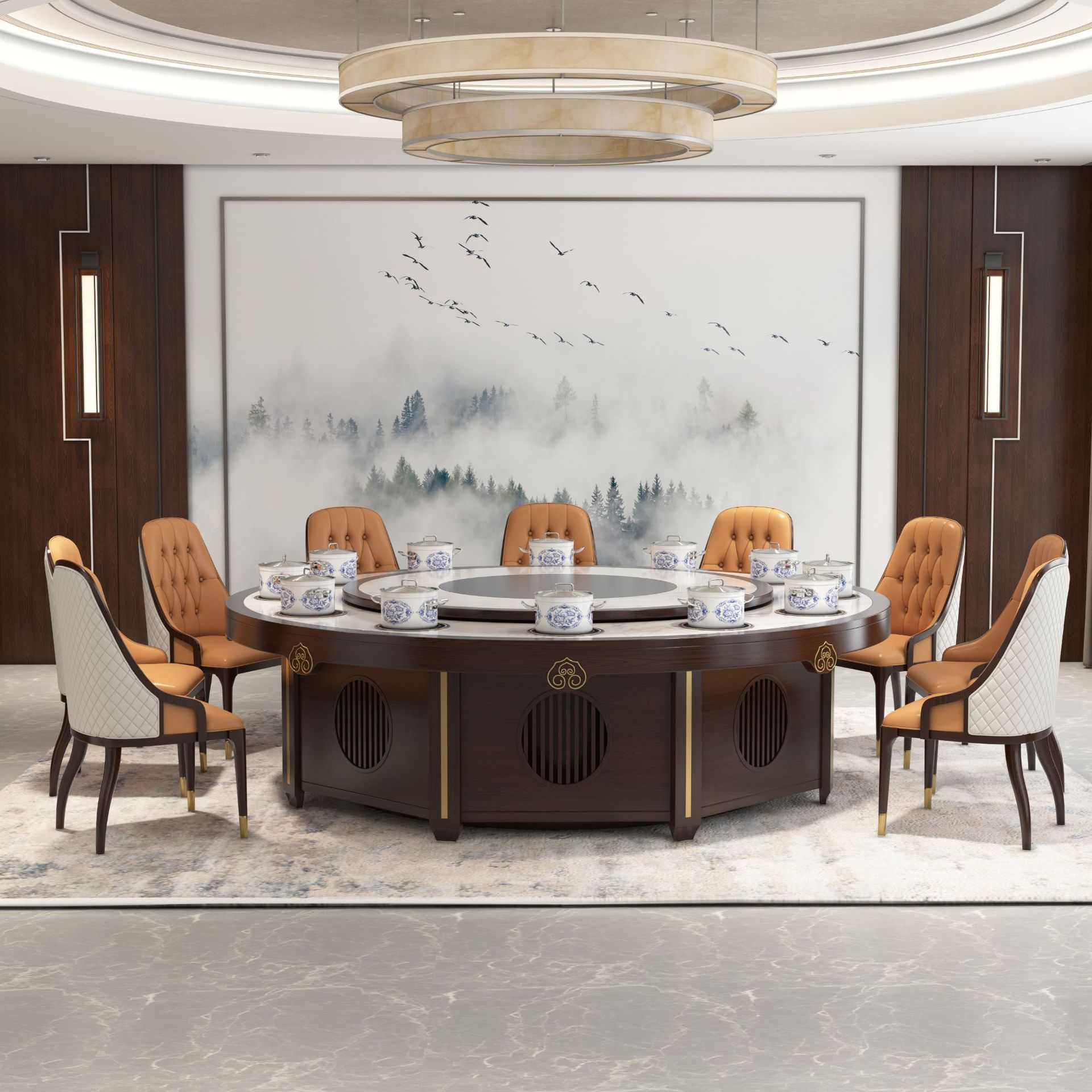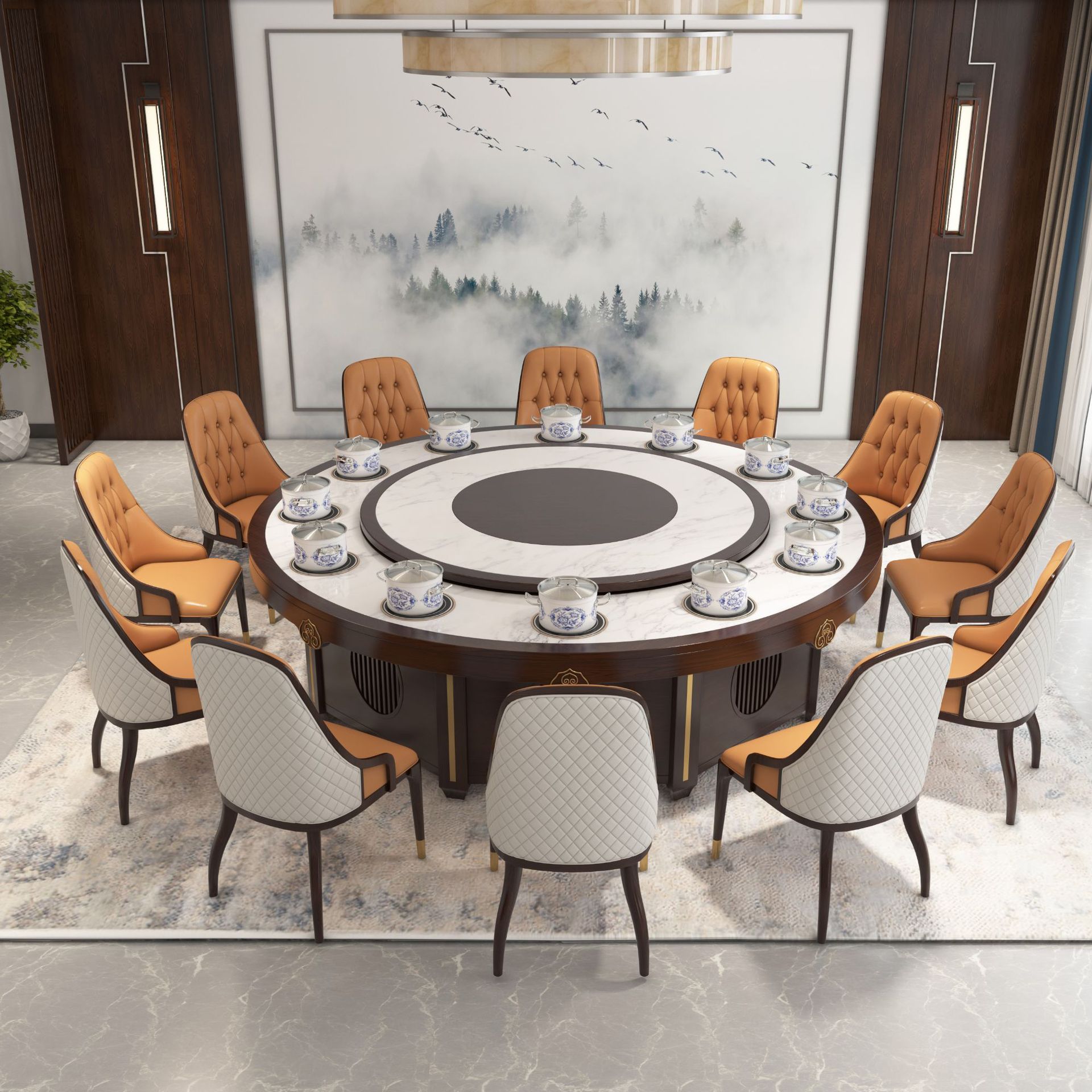 Bàn ăn khách sạn kiểu Trung Quốc mới xoay tự động bàn tròn lớn khách sạn câu lạc bộ nhà hàng giả đá cẩm thạch bàn ghế Lẩu thương mại