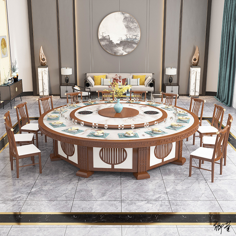 Bàn ăn khách sạn lớn bàn tiệc bàn tròn có bàn xoay di chuyển khách sạn lớn 15 người 20 người kết hợp ghế đá hoa cương