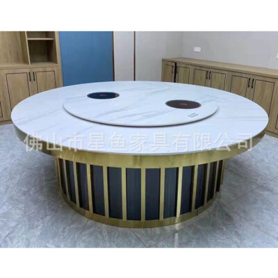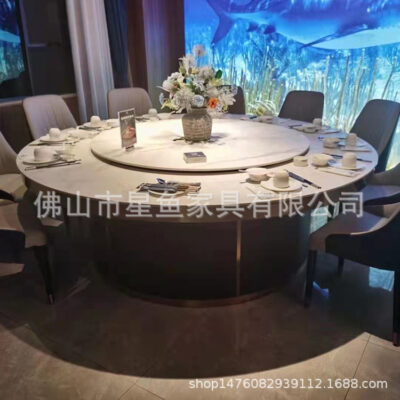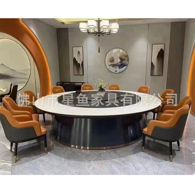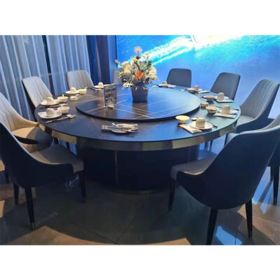 Bàn ăn khách sạn mâm xoay tự động cao cấp, đèn thời trang sang trọng, bàn tròn lớn đá phiến sang trọng, bàn ghế ăn xoay tự động nhà hàng
