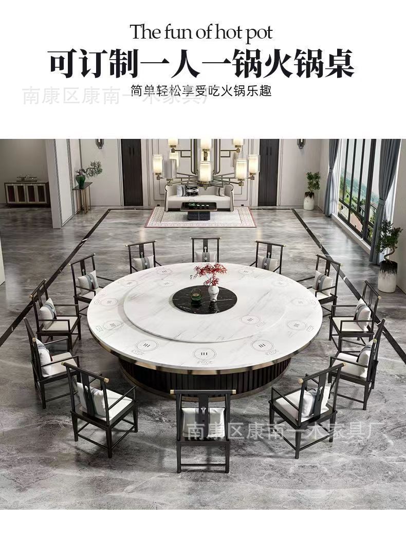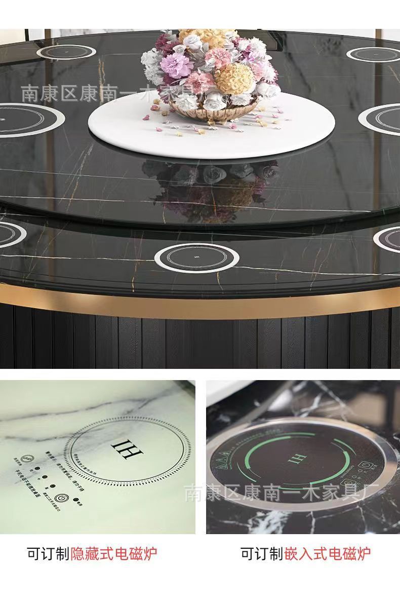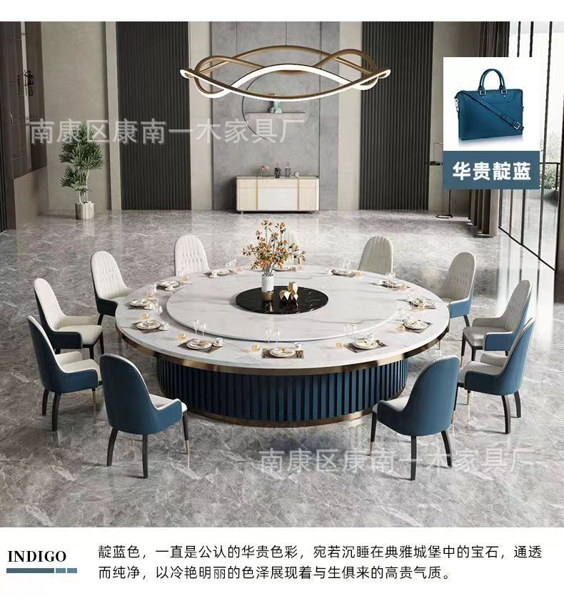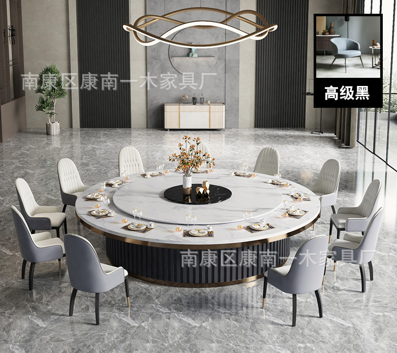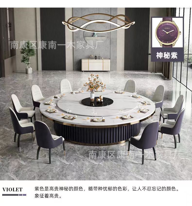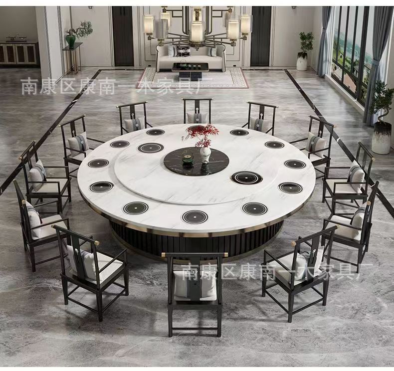 Bàn ăn khách sạn mặt đá Bàn xoay điện Ý nhẹ hoa văn đá cẩm thạch sang trọng biệt thự bàn tiệc khách sạn Bàn ăn 20 người