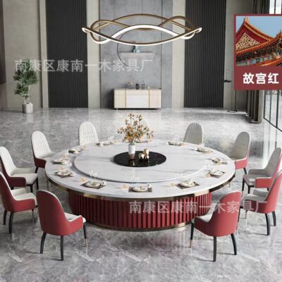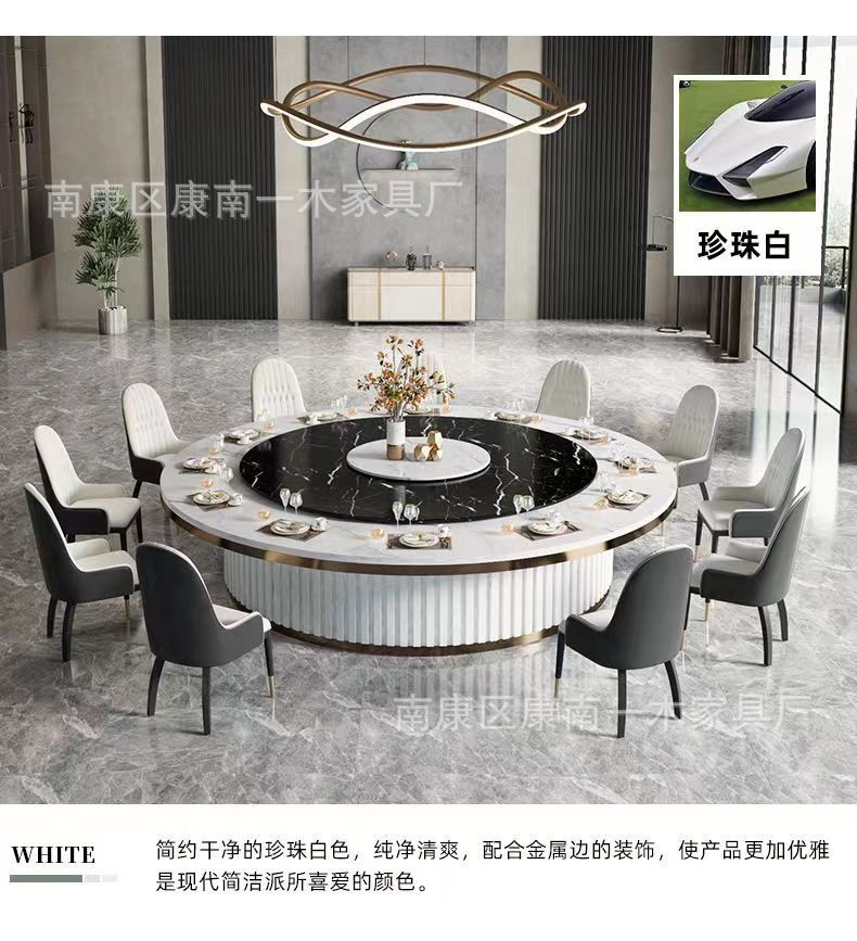 Bàn ăn khách sạn mặt đá Bàn xoay điện Ý nhẹ hoa văn đá cẩm thạch sang trọng biệt thự bàn tiệc khách sạn Bàn ăn 20 người là sản phẩm nổi bật trong dòng bàn ăn nhập khẩu, thiết kế hiện đại và sang trọng, phù hợp với nhiều không gian nội thất cao cấp.