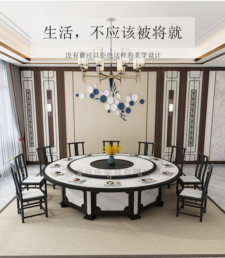 Bàn ăn khách sạn phong cách Trung Hoa mới, bàn tròn lớn, 10 người, 15 người, 20 người, bàn xoay điện bằng gỗ nguyên khối khách sạn với bếp từ – Bàn ăn nhập khẩu cao cấp