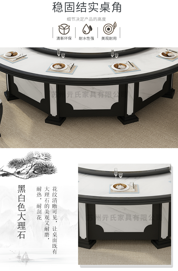 Bàn ăn khách sạn phong cách Trung Hoa mới, bàn tròn lớn, 10 người, 15 người, 20 người, bàn xoay điện bằng gỗ nguyên khối khách sạn với bếp từ.