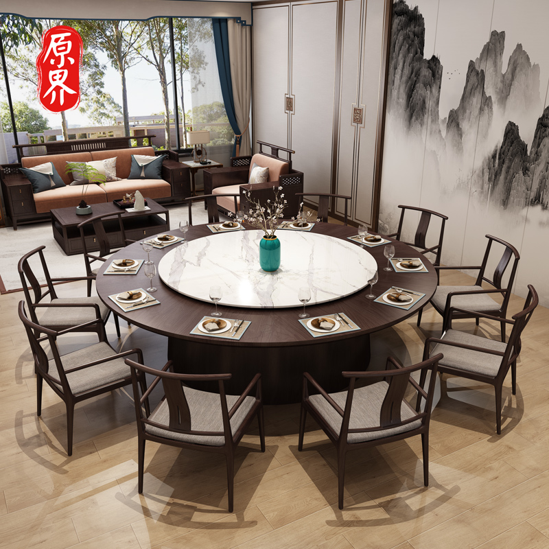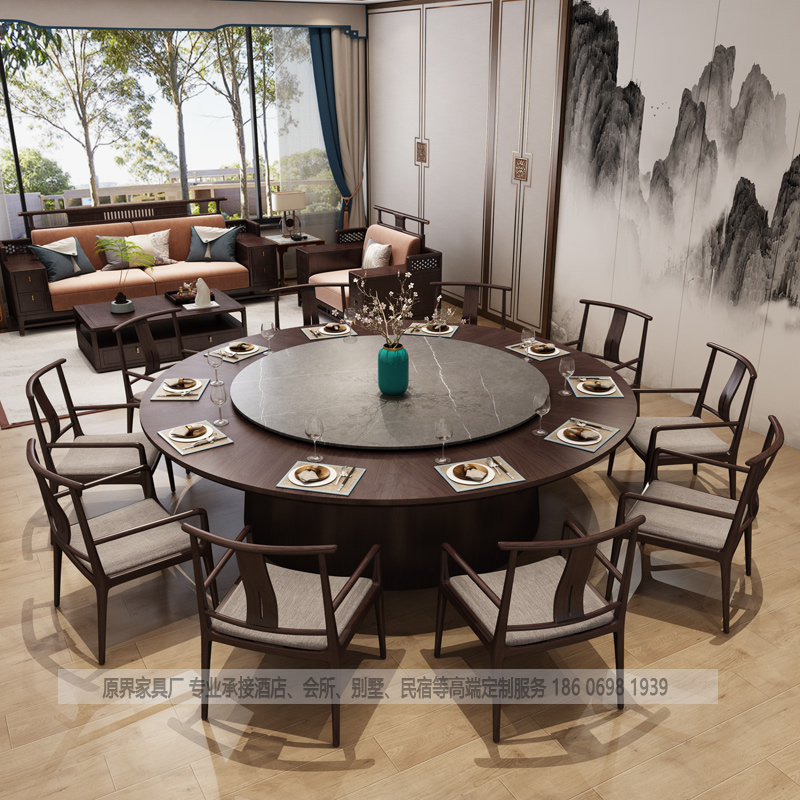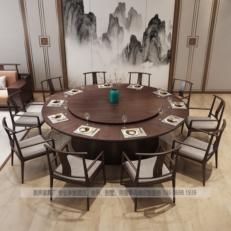 Bàn ăn khách sạn phong cách Trung Quốc mới bàn tròn lớn gỗ chắc chắn bàn xoay điện nhà câu lạc bộ homestay 20 người 15 bàn lẩu tại chỗ – Bàn ăn nhập khẩu cao cấp