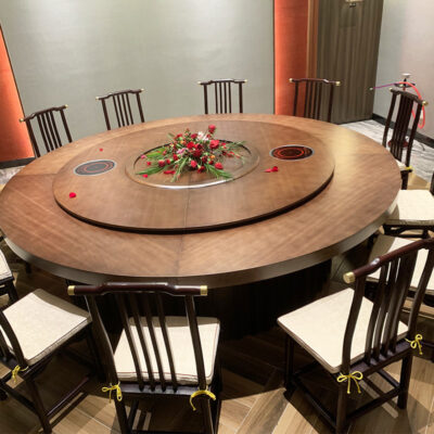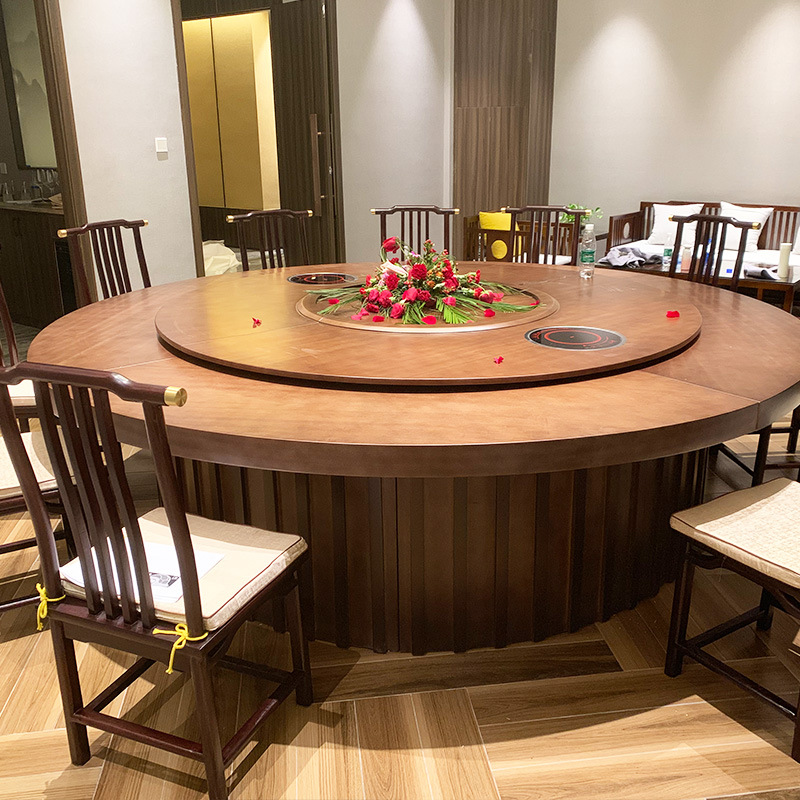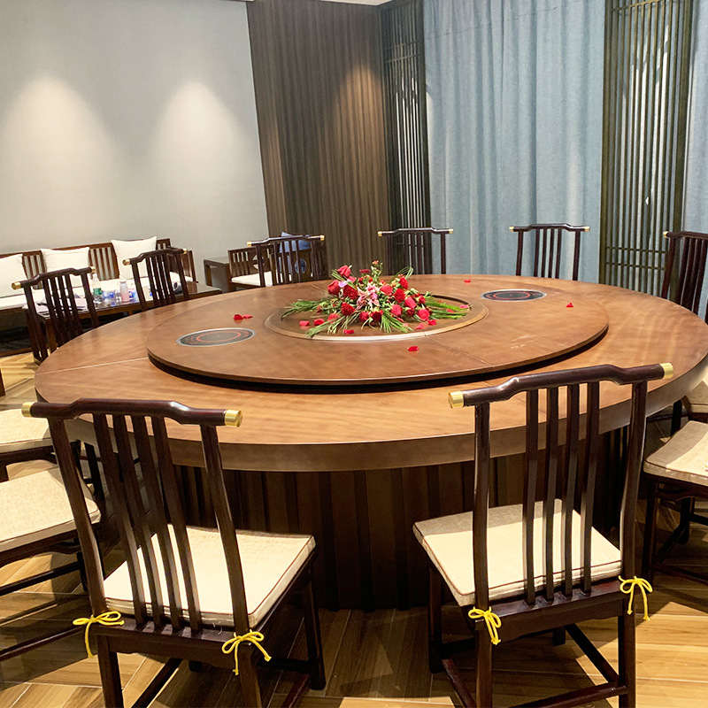 Bàn ăn khách sạn Qiao Jiaren Bàn tròn lớn Bàn xoay tự động kiểu Trung Quốc mới 16 người Bàn xoay tự động hộp khách sạn 18 người