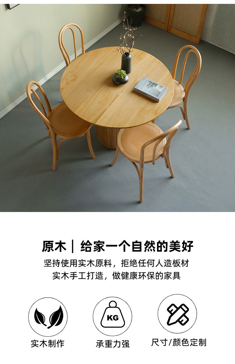 Bàn ăn kiểu khúc gỗ gia đình bàn tròn phong cách wabi sabi bàn ghế gỗ cứng kết hợp bảng đá bàn tròn giải trí quán cà phê bàn đàm phán
