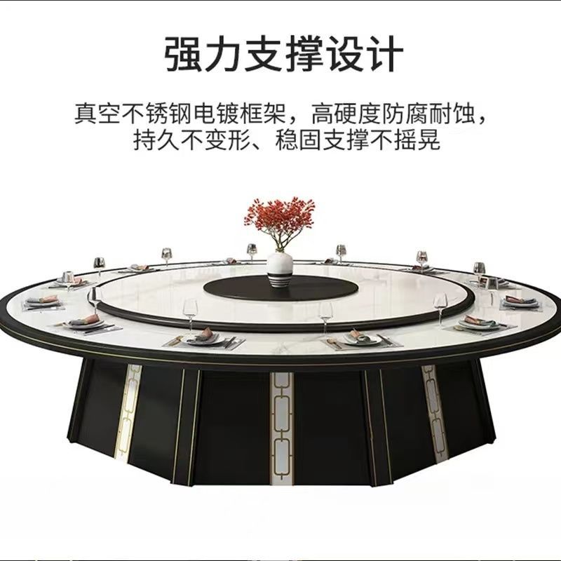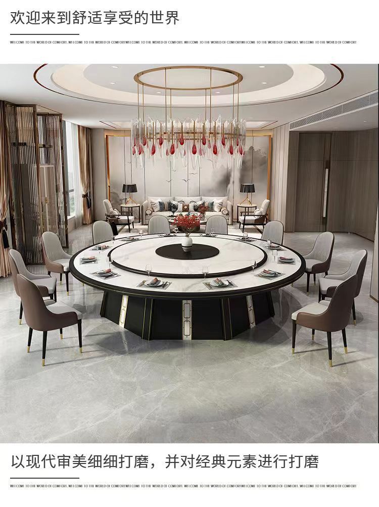 Bàn ăn kiểu Trung Quốc mới cho gia đình 15 người 20 người hoàn toàn tự động bảng đá giả bàn ăn 12 người 16 người khách sạn bàn tròn điện lớn