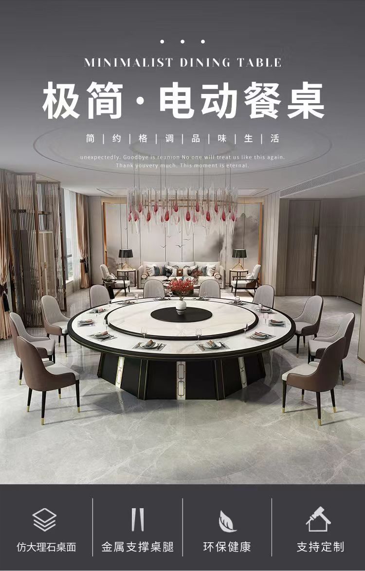 Bàn ăn kiểu Trung Quốc mới cho gia đình 15 người 20 người hoàn toàn tự động bảng đá giả bàn ăn 12 người 16 người khách sạn bàn tròn điện lớn là sản phẩm nổi bật trong dòng bàn ăn nhập khẩu, thiết kế hiện đại và sang trọng, phù hợp với nhiều không gian nội thất cao cấp.