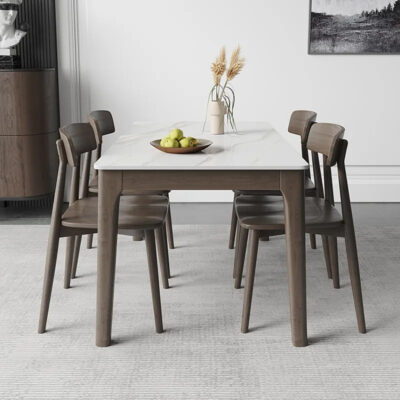 Bàn ăn mặt đá Bắc Âu Ý gia đình hiện đại phòng ăn nhỏ hiện đại đơn giản chữ nhật kết hợp bàn ăn gỗ nguyên khối – Bàn ăn nhập khẩu cao cấp