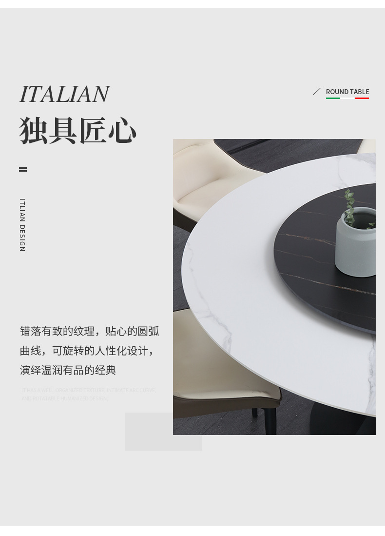 Bàn ăn mặt đá cỡ nhỏ đơn giản hiện đại với bàn xoay bàn ăn gia đình ánh sáng Bàn ăn tròn sang trọng Bàn tròn tối giản kiểu Ý