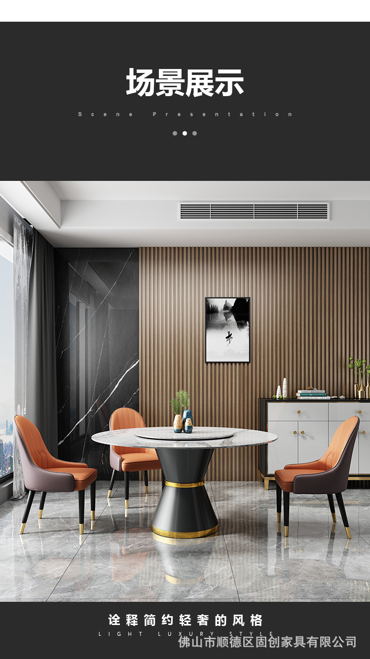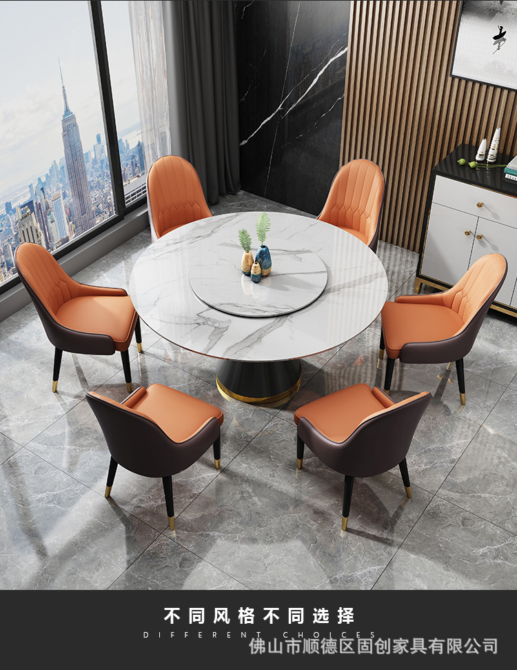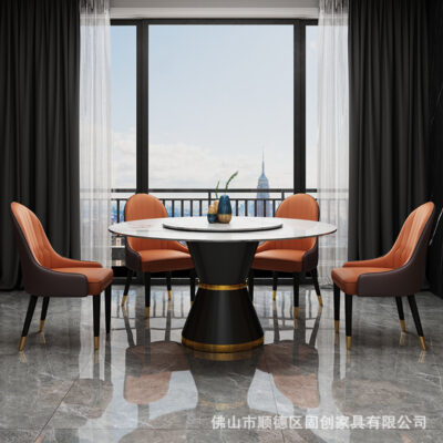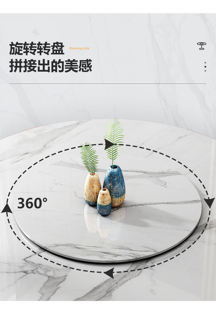 Bàn ăn mặt đá đơn giản hiện đại kiểu Ý tròn bằng đá cẩm thạch nhẹ sang trọng kết hợp bàn ghế ăn với bàn xoay nhà chung cư nhỏ – Bàn ăn nhập khẩu cao cấp