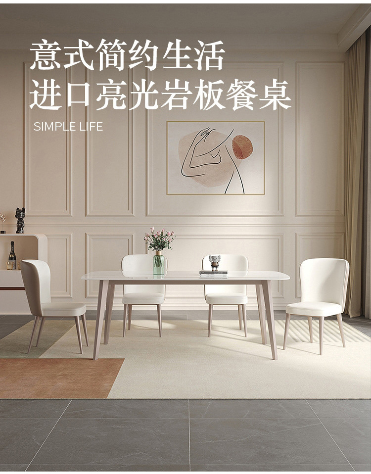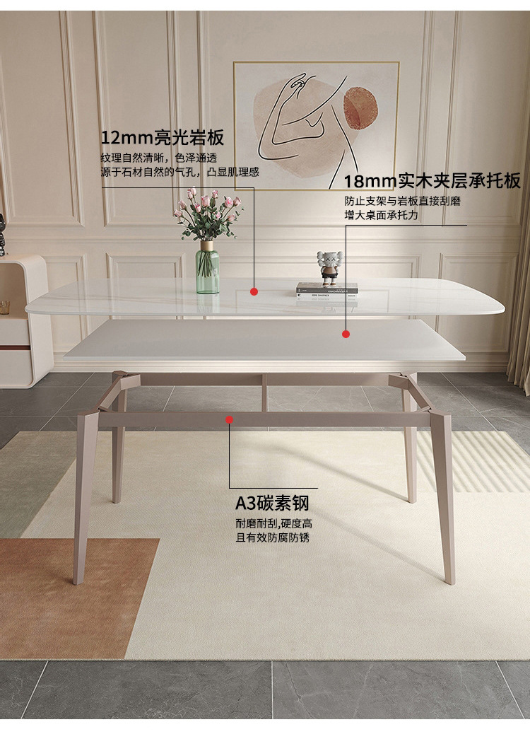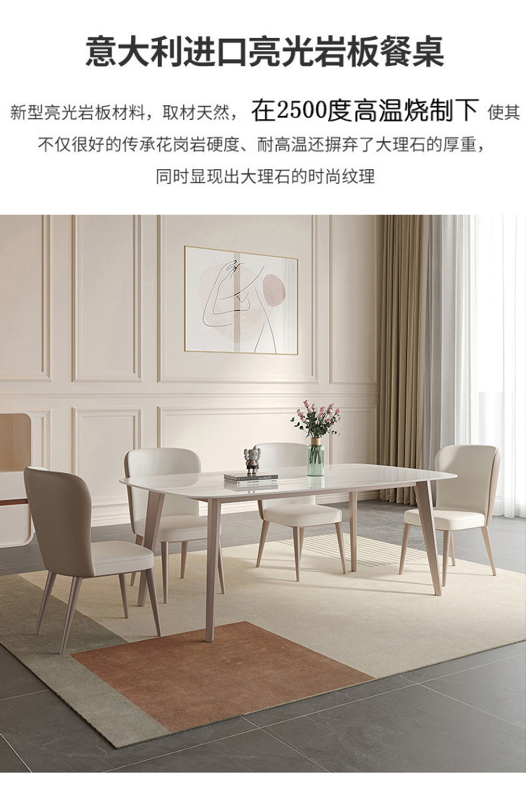 Bàn ăn mặt đá màu kem bàn đơn giản hiện đại nhà hàng phòng ăn nhỏ bàn ăn và ghế kết hợp bàn ăn gia đình chữ nhật là sản phẩm nổi bật trong dòng bàn ăn nhập khẩu, thiết kế hiện đại và sang trọng, phù hợp với nhiều không gian nội thất cao cấp.