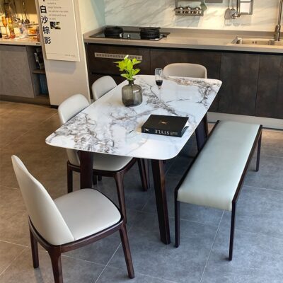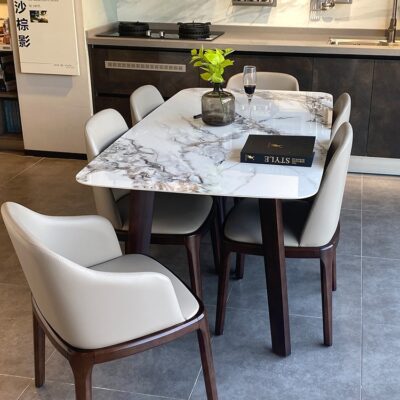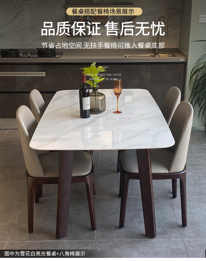 Bàn ăn mặt đá sáng kiểu Ý gỗ đặc gia đình hiện đại đơn giản phong cách sang trọng kết hợp bàn ghế ăn 2023 mới – Bàn ăn nhập khẩu cao cấp