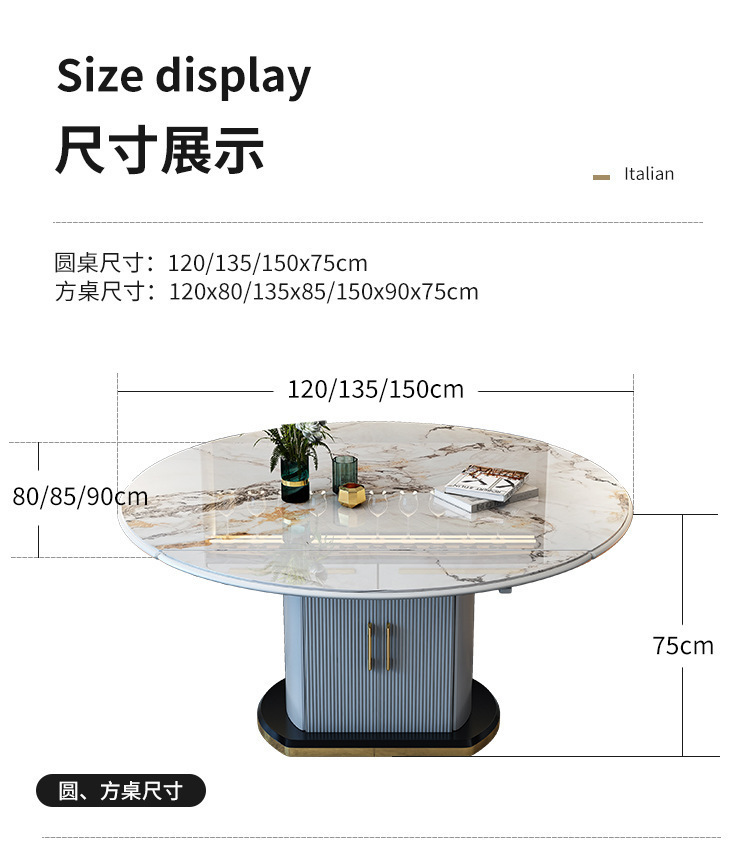 Bàn ăn mặt đá Ý nhẹ sang trọng có tủ nội thất đơn giản Bộ bàn ăn 6 người 8 người kết hợp bàn vuông bàn tròn bàn thu – Bàn ăn nhập khẩu cao cấp