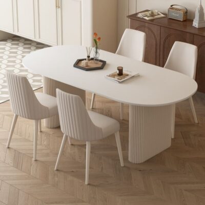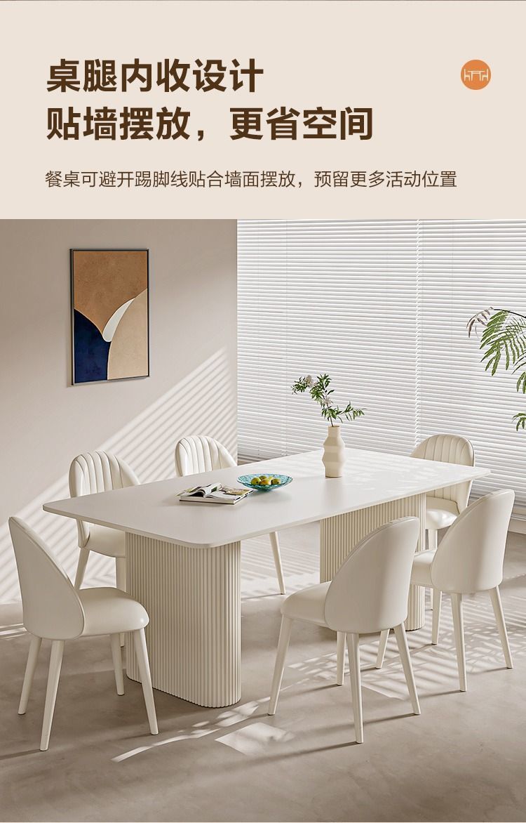 Bàn ăn màu trắng tinh khiết kết hợp với đá phiến cho phòng nhỏ – đẹp, sang trọng và đơn giản.