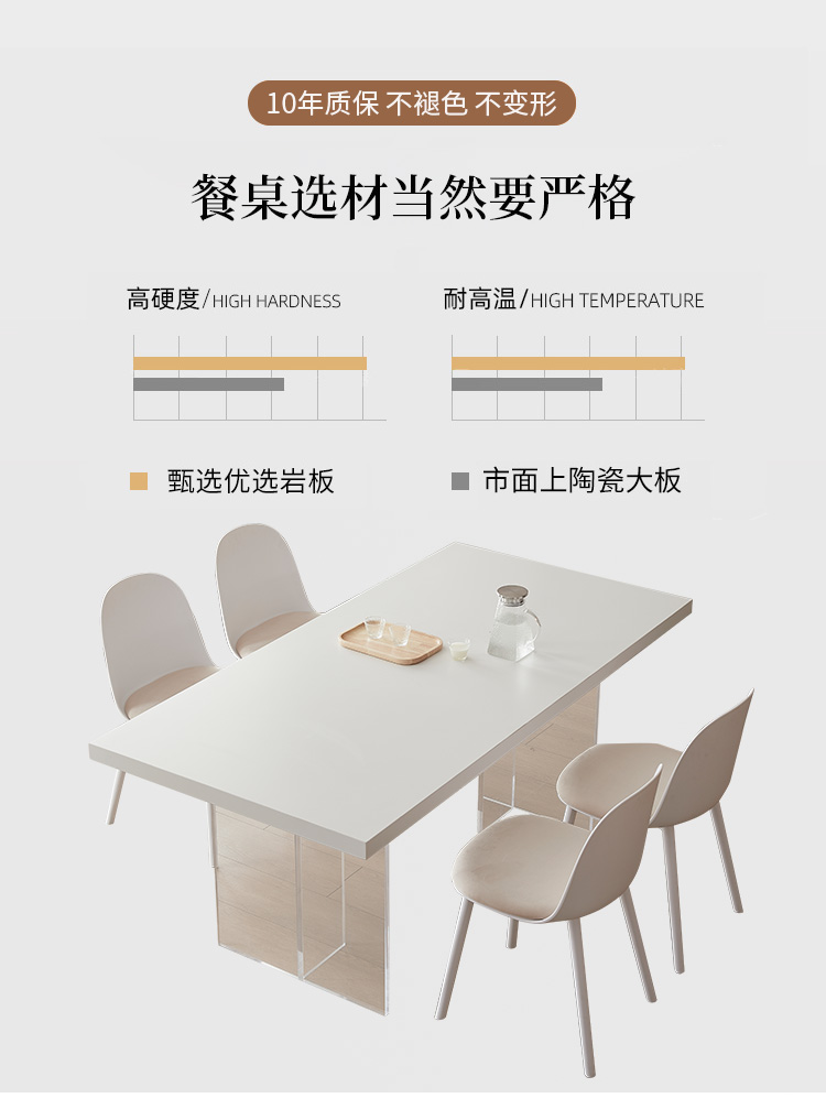 Bàn ăn nhập khẩu, phong cách Bắc Âu, bề mặt đá phiến đơn giản, sang trọng.