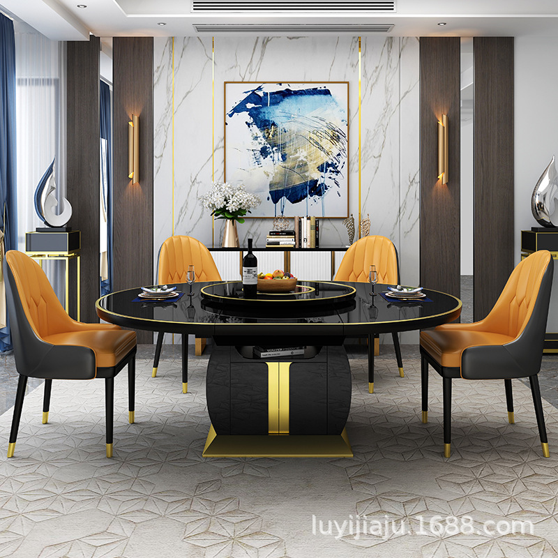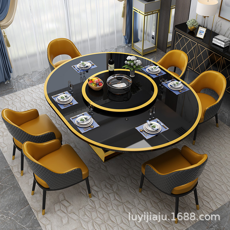 Bàn ăn nhẹ sang trọng đa chức năng với bếp từ có bàn xoay có thể thu vào và gập lại cho hộ gia đình 10-12 người căn hộ hình bầu dục