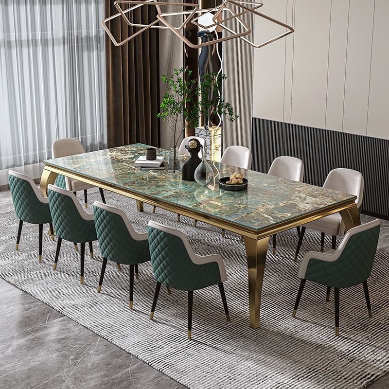 Bàn ăn nhẹ sang trọng hình chữ nhật, bàn đá phiến cỡ lớn đá sang trọng, bàn ăn gia đình 10 người, bàn ăn biệt thự kết hợp bàn ghế.