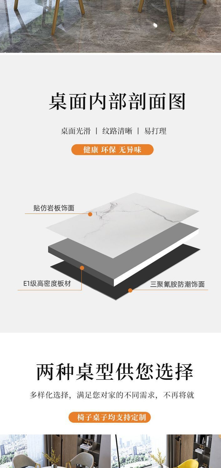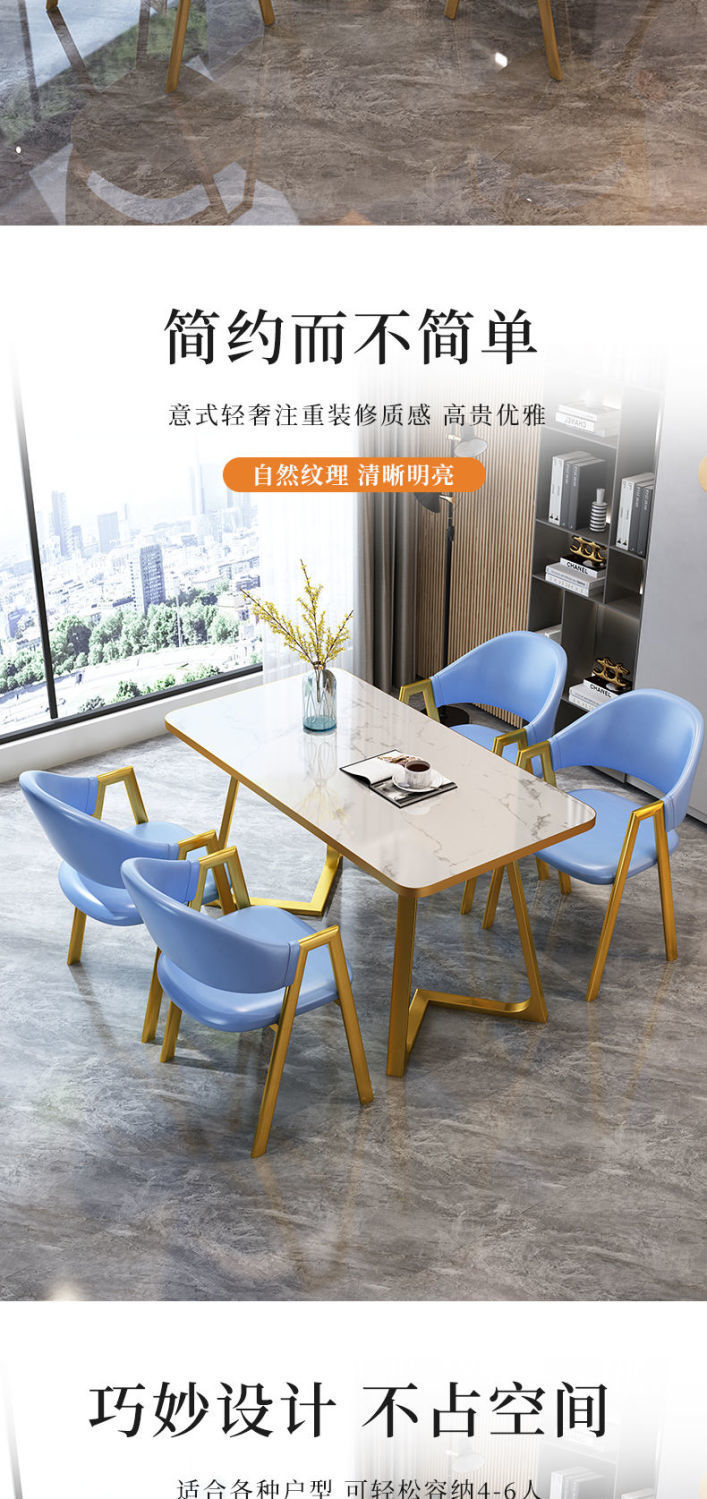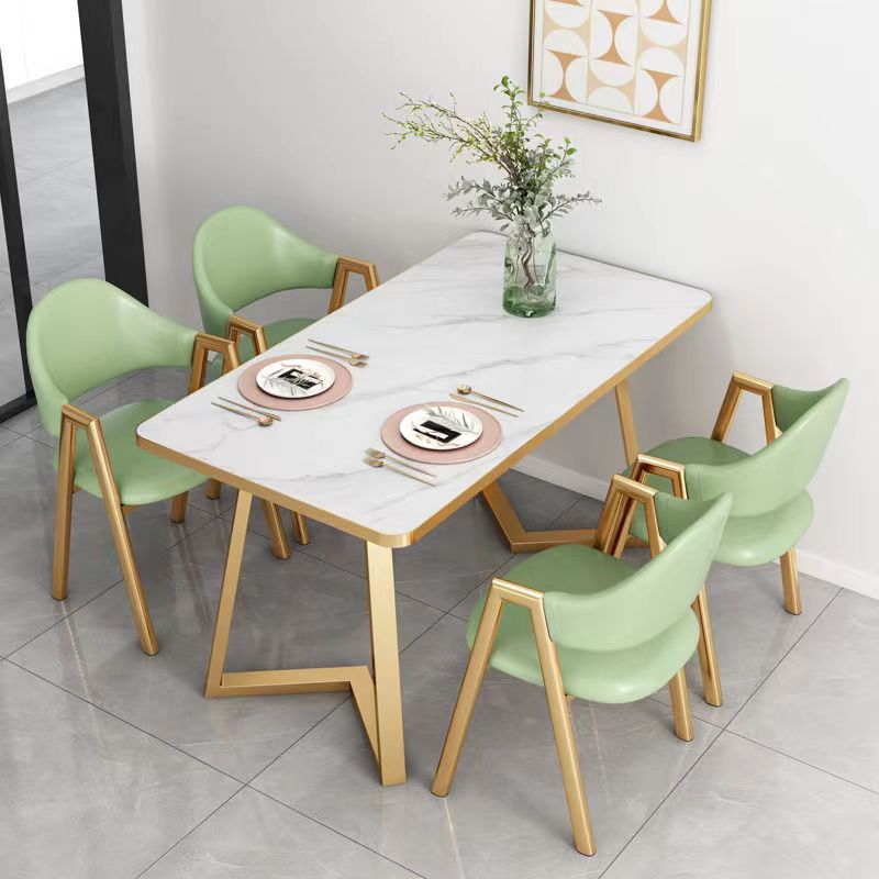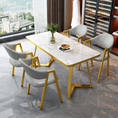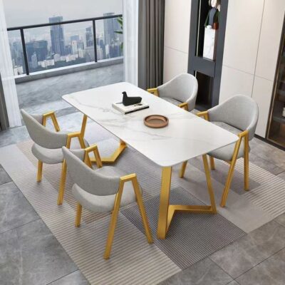 Bàn ăn Pandora đá phiến hình chữ nhật hiện đại đơn giản, phòng nhỏ gia đình, thép không gỉ mạ vàng cao cấp.