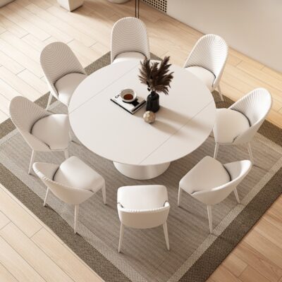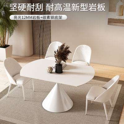 Bàn ăn phiến đá gấp kiểu kính thiên văn màu kem kiểu Pháp có thể thu vào vuông tròn gia đình nhỏ bàn ăn tròn xoay