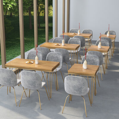 Bàn ăn sắt rèn gỗ đặc đơn giản Bắc Âu quán trà sữa bên cửa sổ Bàn ghế ăn đơn và đôi Bàn ghế ăn giản dị tiện nghi