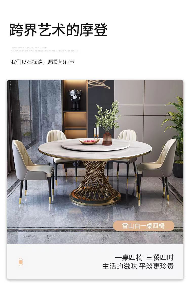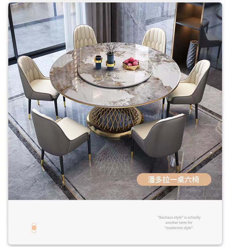 Bàn ăn tại nhà bằng đá cẩm thạch bàn tròn 6 người 8 người gia đình bàn ăn đá phiến phòng khách nhà hàng khách sạn bàn ăn eo nhỏ là sản phẩm nổi bật trong dòng bàn ăn nhập khẩu, thiết kế hiện đại và sang trọng, phù hợp với nhiều không gian nội thất cao cấp.